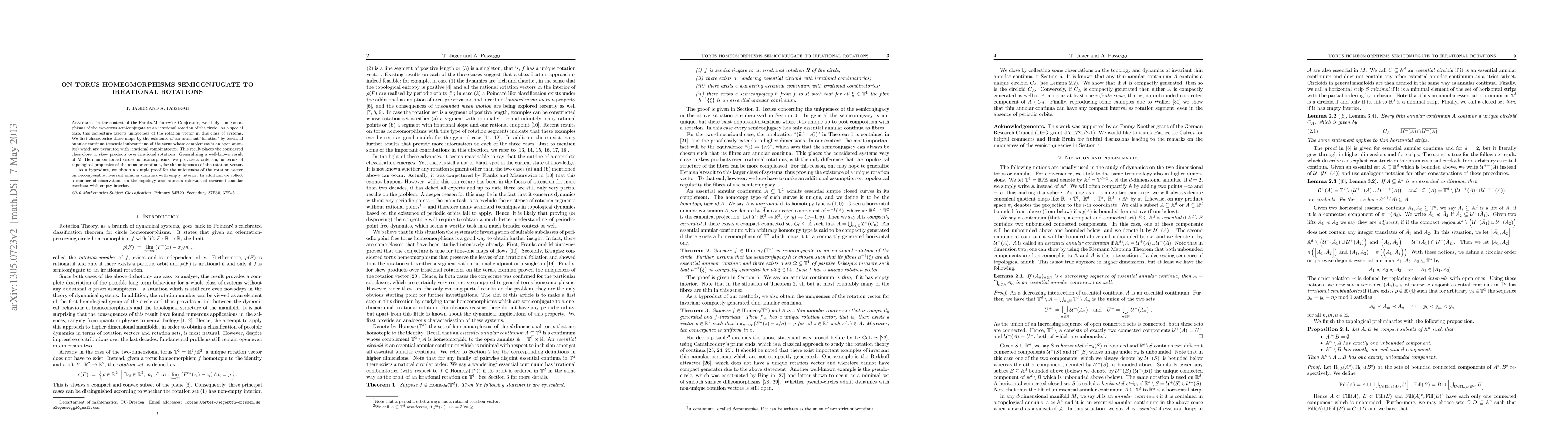 This paper investigates homeomorphisms of the torus semiconjugate to irrational rotations, focusing on the Franks-Misiurewicz Conjecture. It characterizes these maps by invariant foliations and provides a criterion for the uniqueness of the rotation vector based on topological properties of annular continua.