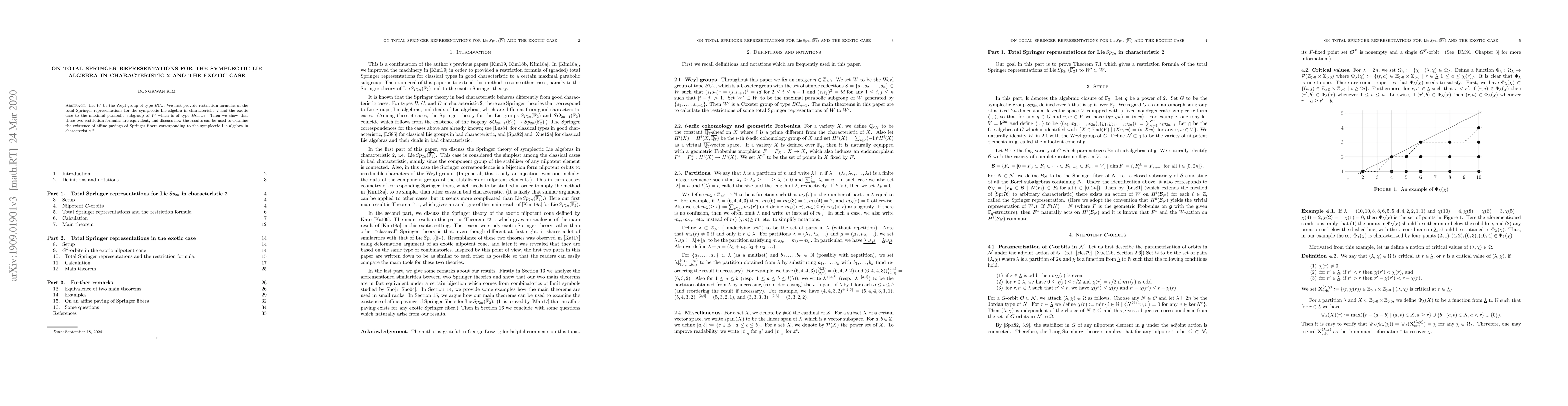 This paper provides restriction formulas for total Springer representations of the symplectic Lie algebra in characteristic 2 and the exotic case, showing they are equivalent and discussing their implications for examining affine pavings of Springer fibers.