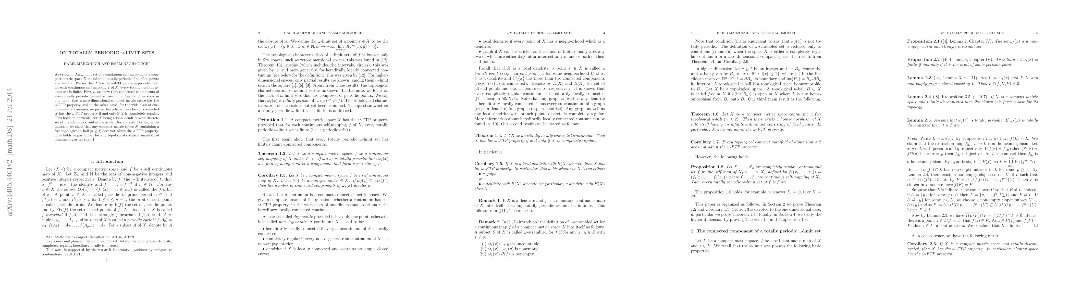 An w-limit set of a continuous self-mapping of a compact metric space X is said to be totally periodic if all of its points are periodic. We say that X has the w-FTP property provided that for each continuous self-mapping f of X, every totally periodic w-limit set is finite. Firstly, we show that connected components of every totally periodic w-limit set are finite. Secondly, for the wide class of one-dimensional continua, we prove that a hereditary locally connected X has the w-FTP property if and only if X is completely regular. This holds in particular for X being a local dendrite with discrete set of branch points, and in particular, for a graph. For higher dimension, we show that any compact metric space X containing a free topological n-ball (n great than 2) does not admit the w-FTP property. This holds in particular, for any topological compact manifold of dimension greater than 1.