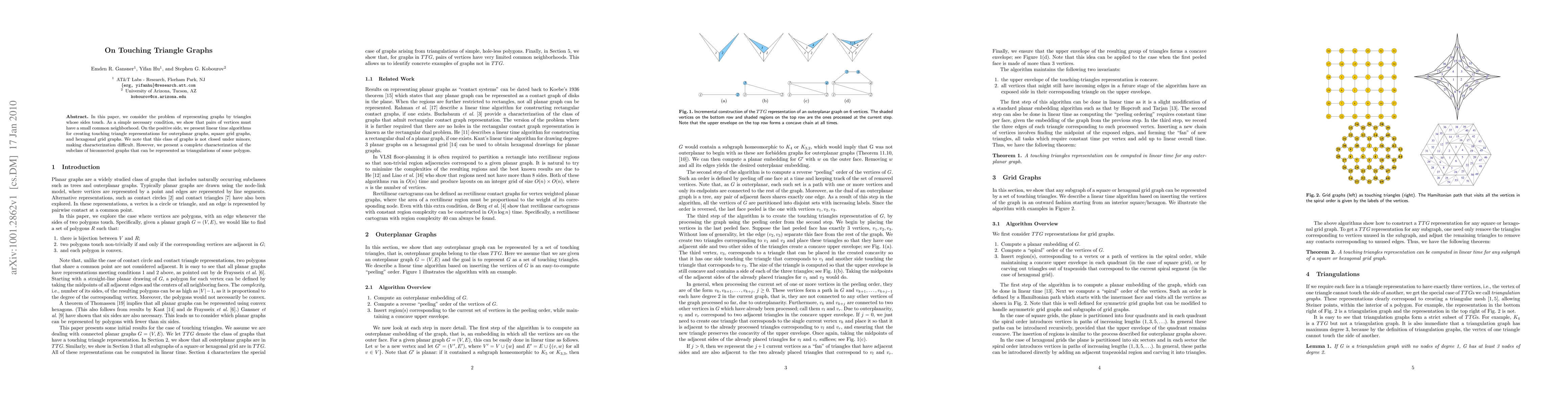 Researchers develop efficient algorithms to represent graphs using touching triangles, specifically for outerplanar, square grid, and hexagonal grid graphs, with implications for understanding graph structure and representation.