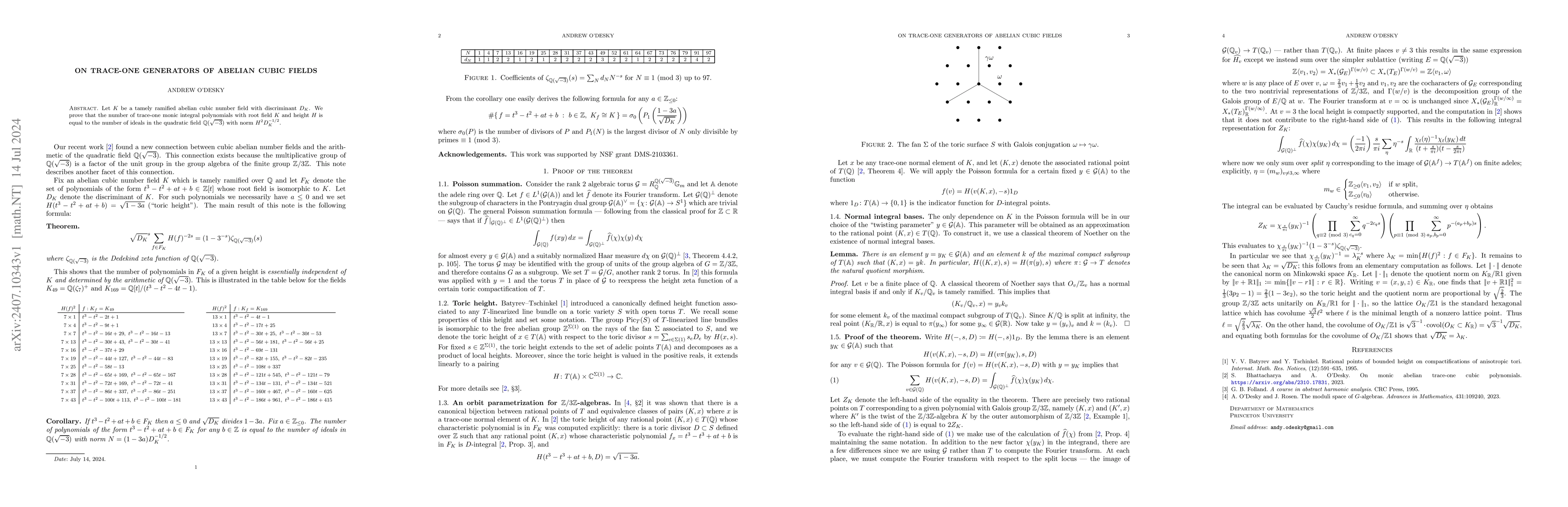 Summary: This paper establishes an equivalence between the count of trace-one monic integral polynomials generating a tamely ramified abelian cubic field $K$ and the count of ideals in the quadratic field $\mathbb Q(\sqrt{-3})$ with specific norm related to $K$'s discriminant.