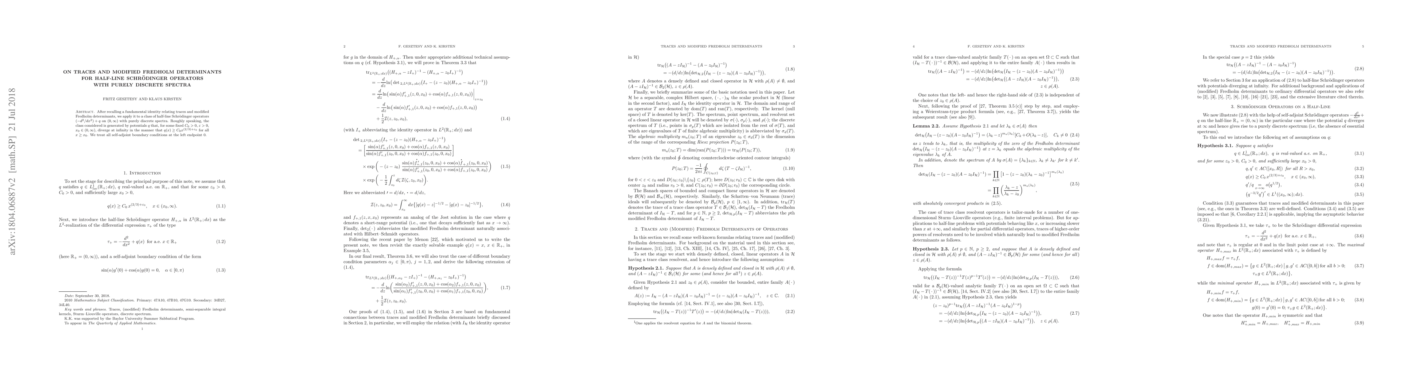 After recalling a fundamental identity relating traces and modified Fredholm determinants, we apply it to a class of half-line Schr\"odinger operators $(- d^2/dx^2) + q$ on $(0,\infty)$ with purely discrete spectra. Roughly speaking, the class considered is generated by potentials $q$ that, for some fixed $C_0 > 0$, $\varepsilon > 0$, $x_0 \in (0, \infty)$, diverge at infinity in the manner that $q(x) \geq C_0 x^{(2/3) + \varepsilon_0}$ for all $x \geq x_0$. We treat all self-adjoint boundary conditions at the left endpoint $0$.