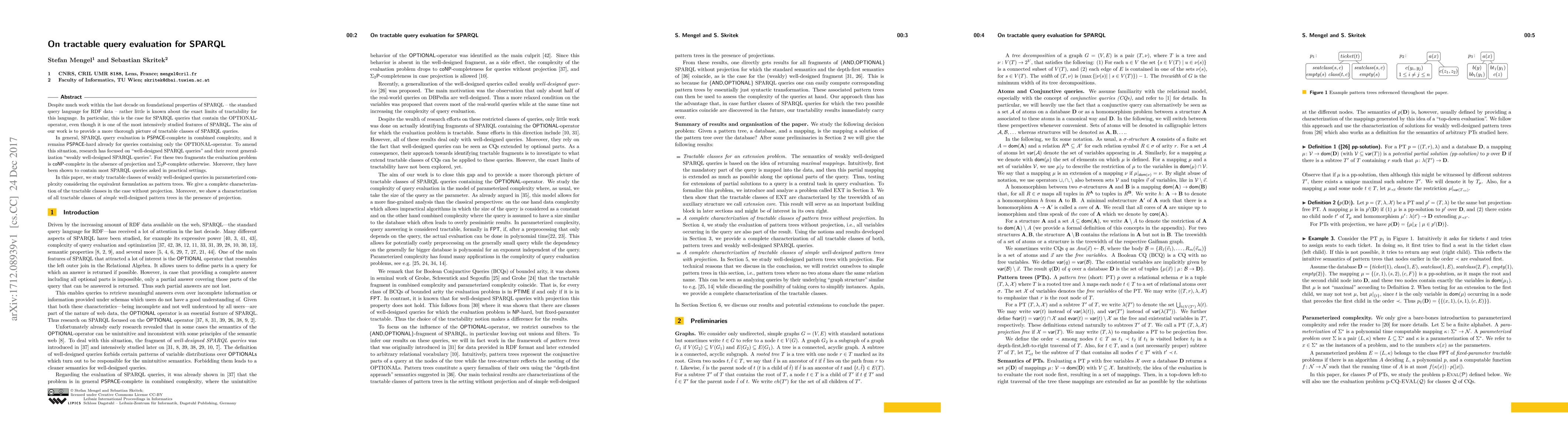 This paper investigates the tractability of SPARQL queries, particularly those containing the OPTIONAL-operator, and provides a detailed characterization of tractable classes of weakly well-designed queries in parameterized complexity. The study focuses on pattern trees and establishes the complexity of query evaluation without and with projection.