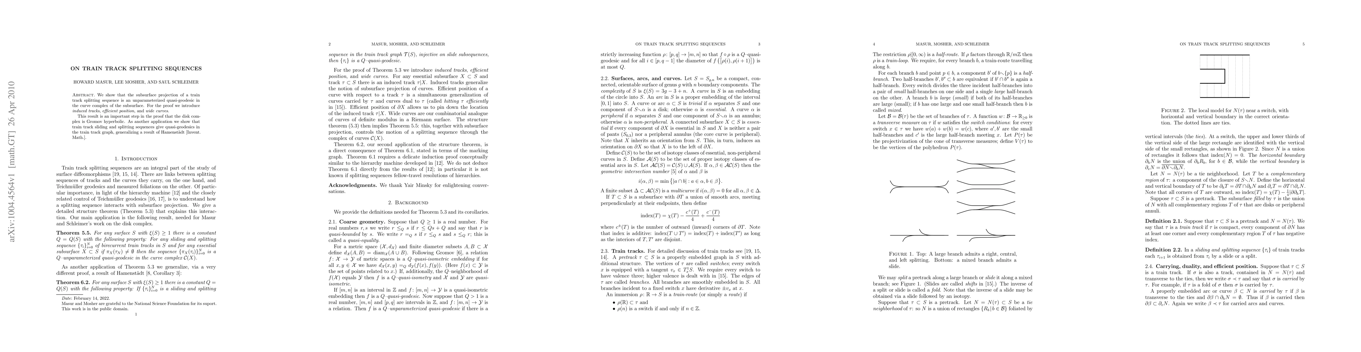 This paper demonstrates that subsurface projections of train track splitting sequences are unparameterized quasi-geodesics in the curve complex, utilizing concepts like induced tracks, efficient position, and wide curves. This finding supports the proof that the disk complex is Gromov hyperbolic and extends quasi-geodesic results in the train track graph.