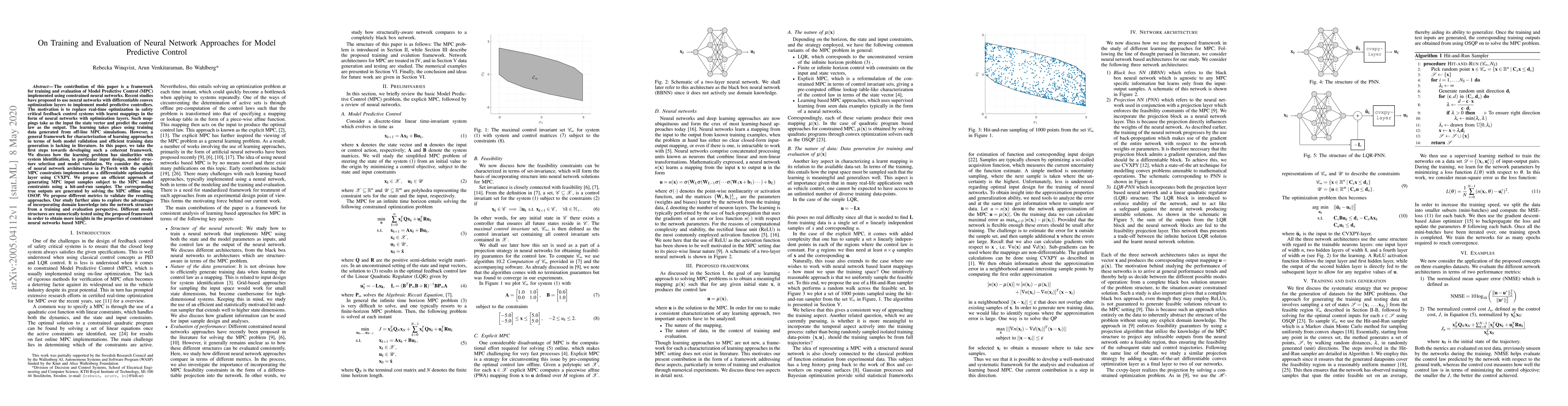 This paper proposes a framework for training and evaluating neural networks for Model Predictive Control, focusing on efficient input generation and model validation metrics. It aims to develop a coherent approach for constrained neural network-based MPC by exploring the intersection of machine learning and control theory.