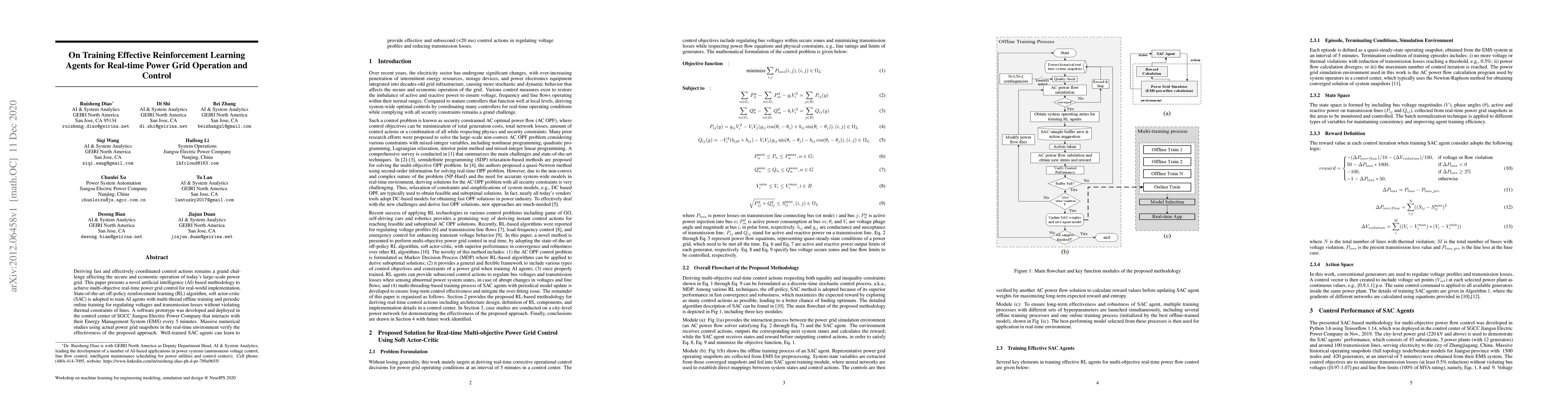 This paper introduces an AI-based reinforcement learning methodology using the soft actor-critic (SAC) algorithm to train agents for real-time power grid control, achieving effective regulation of voltages and transmission losses. The approach was deployed in SGCC Jiangsu Electric Power Company, demonstrating subsecond control actions and improved grid operation.