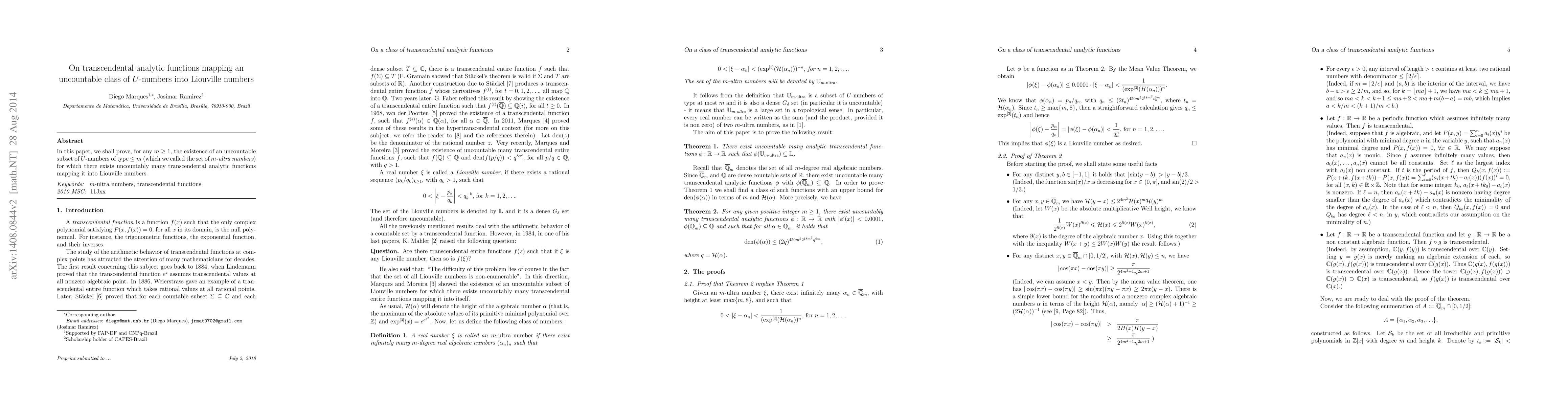 This paper proves the existence of an uncountable subset of $m$-ultra numbers for any $m\geq 1$ that can be mapped by uncountably many transcendental analytic functions into Liouville numbers. The focus is on the relationship between $U$-numbers and Liouville numbers through transcendental mappings.
