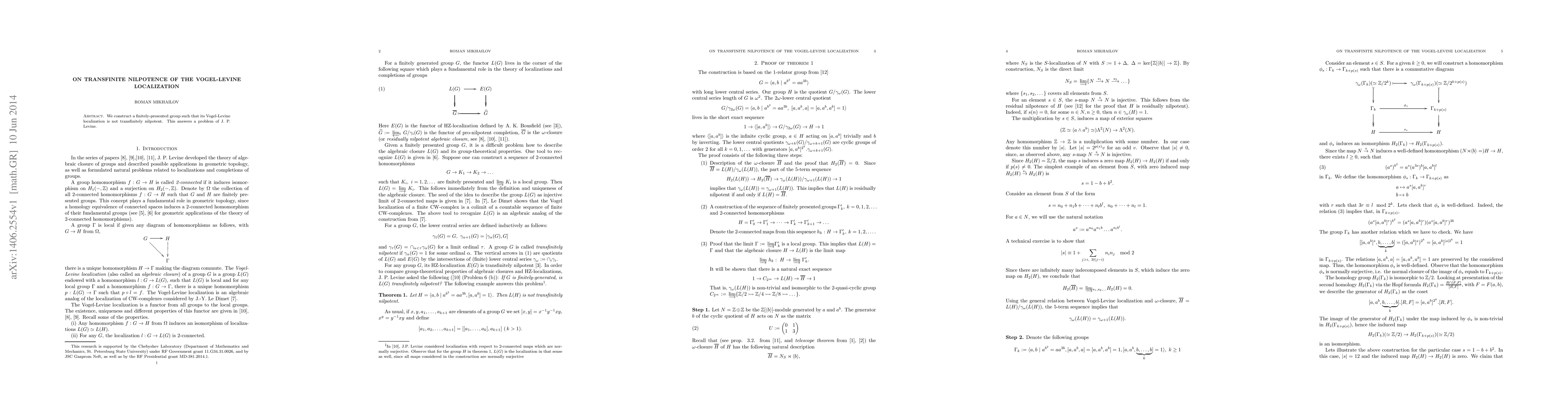 Summary: The paper constructs a finitely-presented group whose Vogel-Levine localization fails to be transfinitely nilpotent, resolving a question posed by J. P. Levine. This finding challenges the assumption that Vogel-Levine localizations are always transfinitely nilpotent.