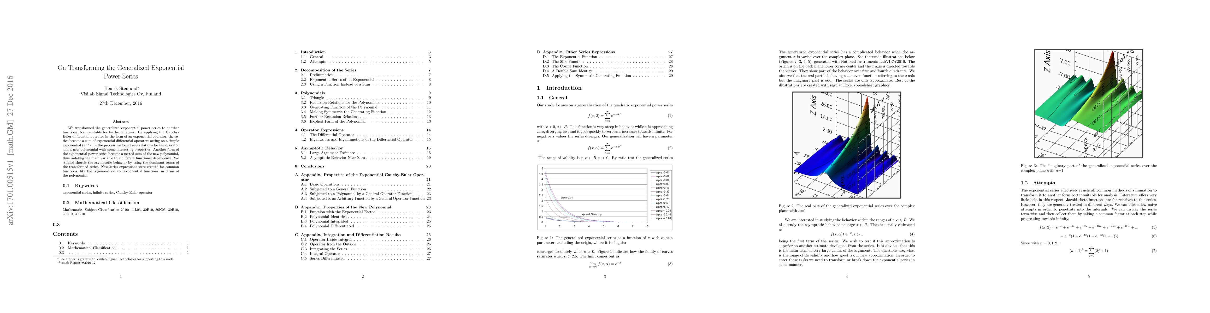 The paper transforms the generalized exponential power series into a new functional form using the Cauchy-Euler differential operator, revealing new relations and a new polynomial. The transformed series exhibits a nested sum of this polynomial, simplifying the main variable's dependence, and provides new series expressions for common functions like trigonometric and exponential functions.