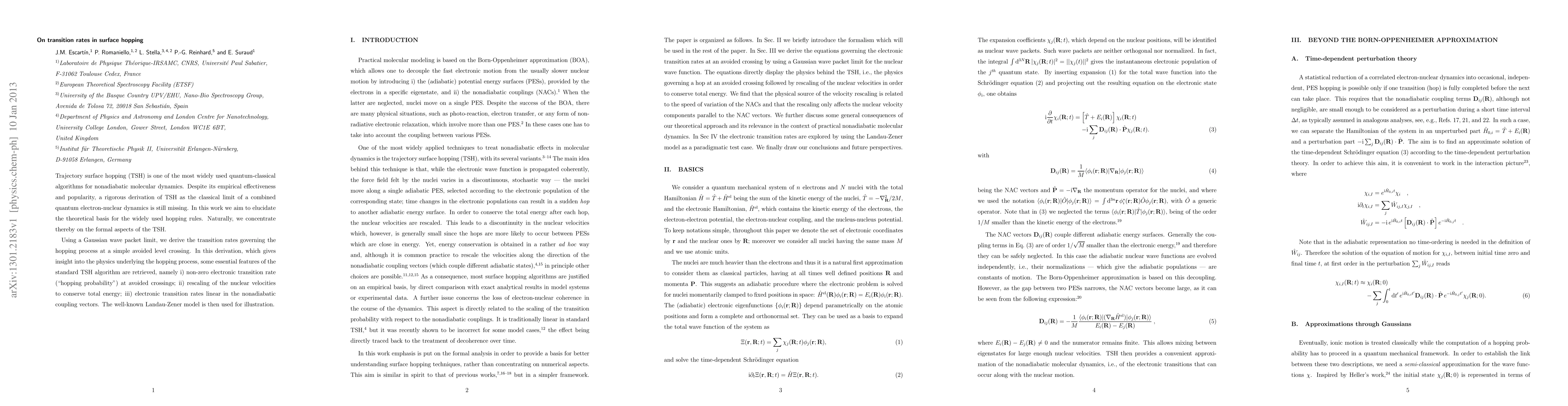 Trajectory surface hopping (TSH) is one of the most widely used quantum-classical algorithms for nonadiabatic molecular dynamics. Despite its empirical effectiveness and popularity, a rigorous derivation of TSH as the classical limit of a combined quantum electron-nuclear dynamics is still missing. In this work we aim to elucidate the theoretical basis for the widely used hopping rules. Naturally, we concentrate thereby on the formal aspects of the TSH. Using a Gaussian wave packet limit, we derive the transition rates governing the hopping process at a simple avoided level crossing. In this derivation, which gives insight into the physics underlying the hopping process, some essential features of the standard TSH algorithm are retrieved, namely i) non-zero electronic transition rate ("hopping probability") at avoided crossings; ii) rescaling of the nuclear velocities to conserve total energy; iii) electronic transition rates linear in the nonadiabatic coupling vectors. The well-known Landau-Zener model is then used for illustration.