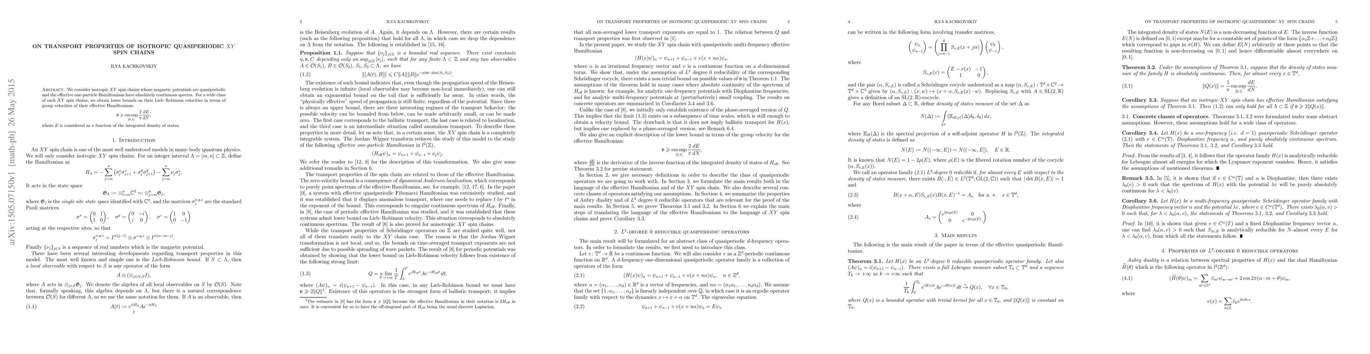 This paper investigates the transport properties of isotropic quasiperiodic $XY$ spin chains, establishing lower bounds for their Lieb--Robinson velocities in terms of group velocities derived from their effective Hamiltonians. The result is $\mathfrak v\ge\mathrm{ess\,sup}_{[0,1]}\frac{2}{\pi}\frac{dE}{dN}$, where $E$ is linked to the integrated density of states.