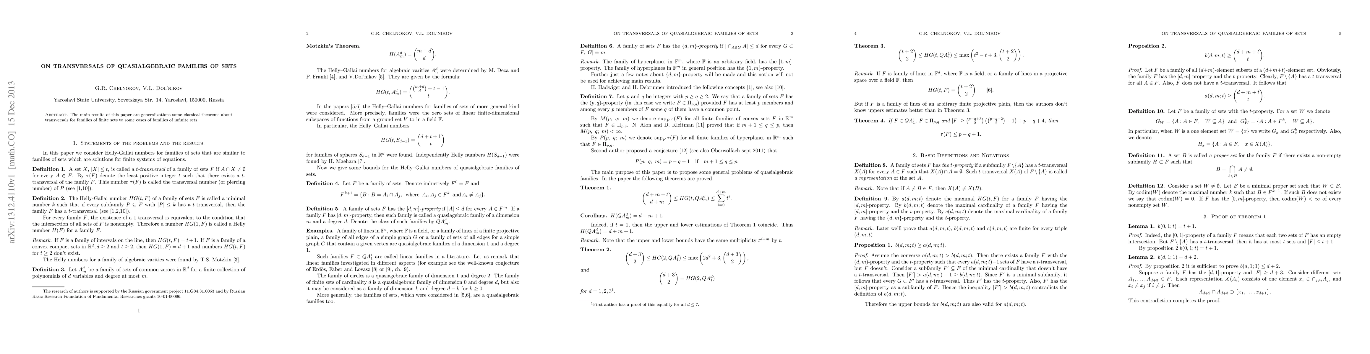 Summary: This paper generalizes classical theorems on transversals for finite set families to infinite set families, extending the understanding of transversal properties in quasialgebraic settings.