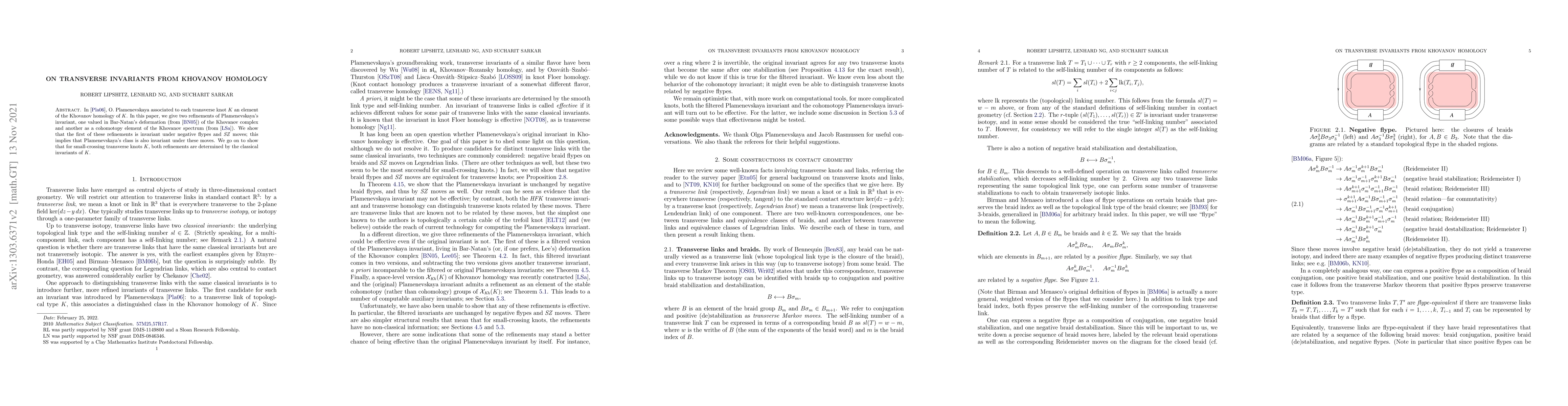 O. Plamenevskaya associated to each transverse knot K an element of the Khovanov homology of K. In this paper, we give two refinements of Plamenevskaya's invariant, one valued in Bar-Natan's deformation of the Khovanov complex and another as a cohomotopy element of the Khovanov spectrum. We show that the first of these refinements is invariant under negative flypes and SZ moves; this implies that Plamenevskaya's class is also invariant under these moves. We go on to show that for small-crossing transverse knots K, both refinements are determined by the classical invariants of K.