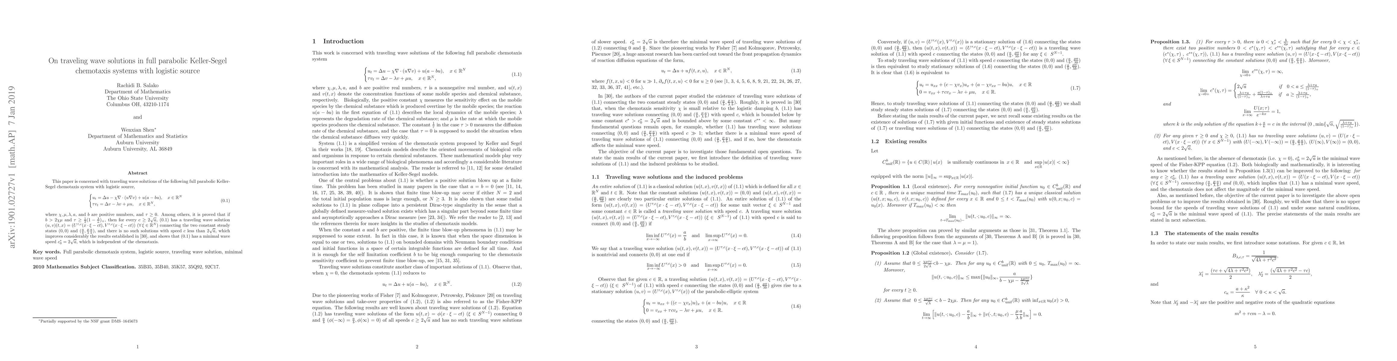 This paper investigates traveling wave solutions for a full parabolic Keller-Segel chemotaxis system with a logistic source, proving the existence of such solutions under specific conditions on parameters, and establishing a minimal wave speed of $2\sqrt{a}$ independent of chemotaxis.