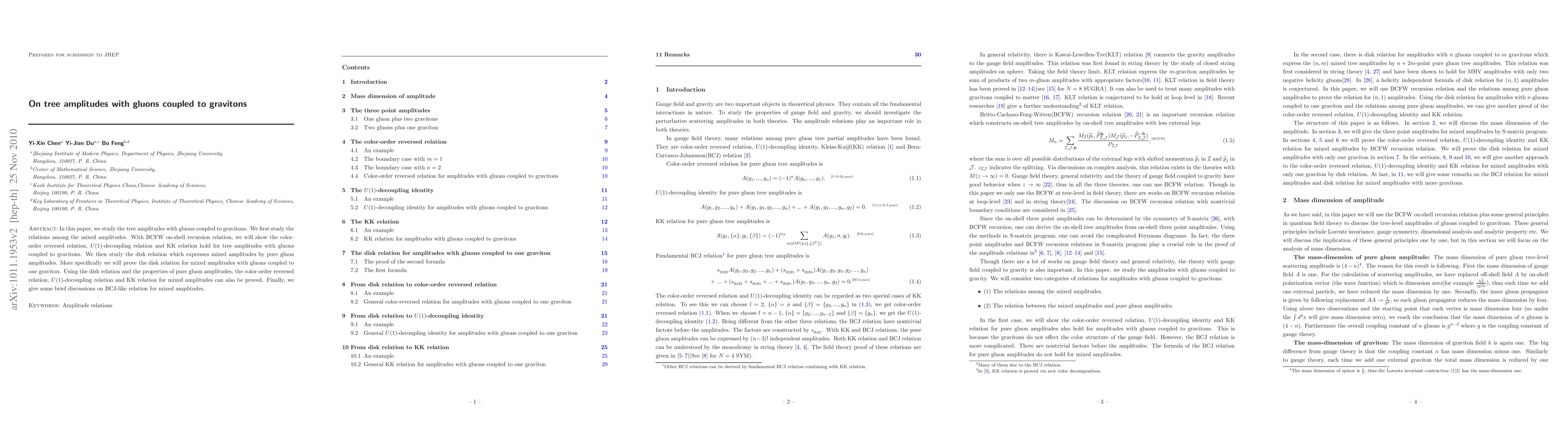 Researchers study tree amplitudes with gluons coupled to gravitons, proving relations among mixed amplitudes using BCFW recursion relation and disk relation.