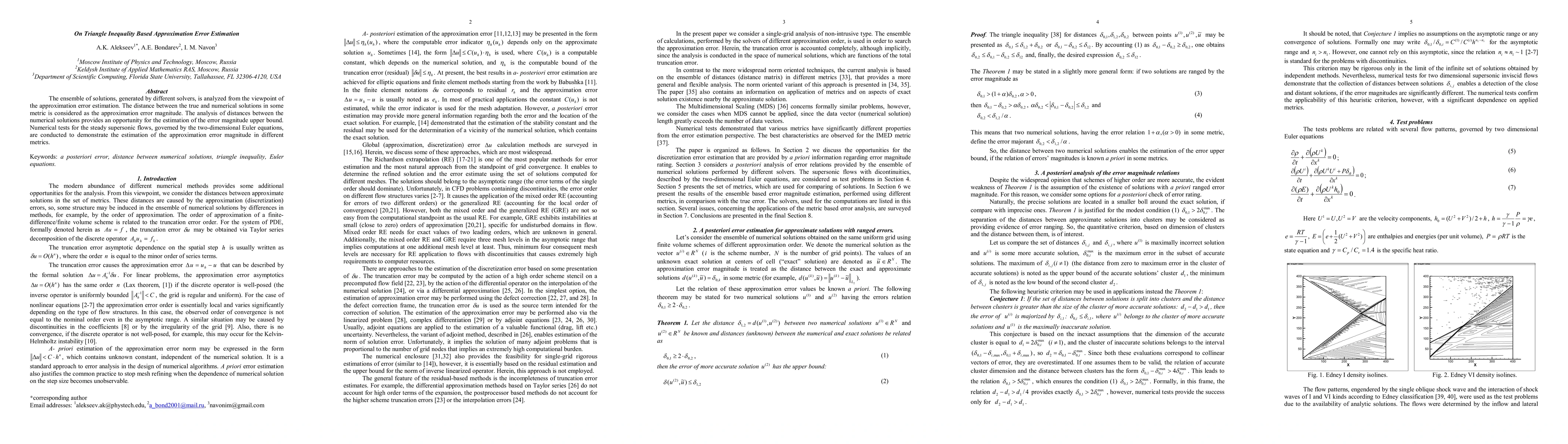 This paper explores the use of the triangle inequality to estimate the discretization error and enclose the exact solution within a vicinity defined by numerical approximations. Numerical tests on steady supersonic flows validate the method's effectiveness, emphasizing the importance of an appropriate metric choice for accurate error estimation.