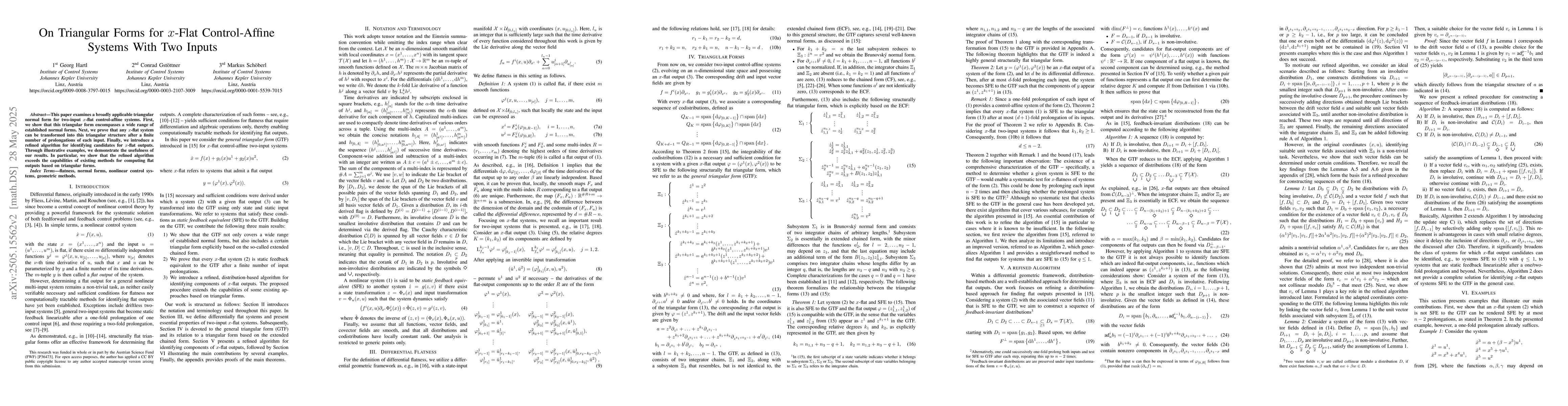The paper presents a novel triangular normal form for two-input x-flat control-affine systems and an improved algorithm for identifying flat output candidates.