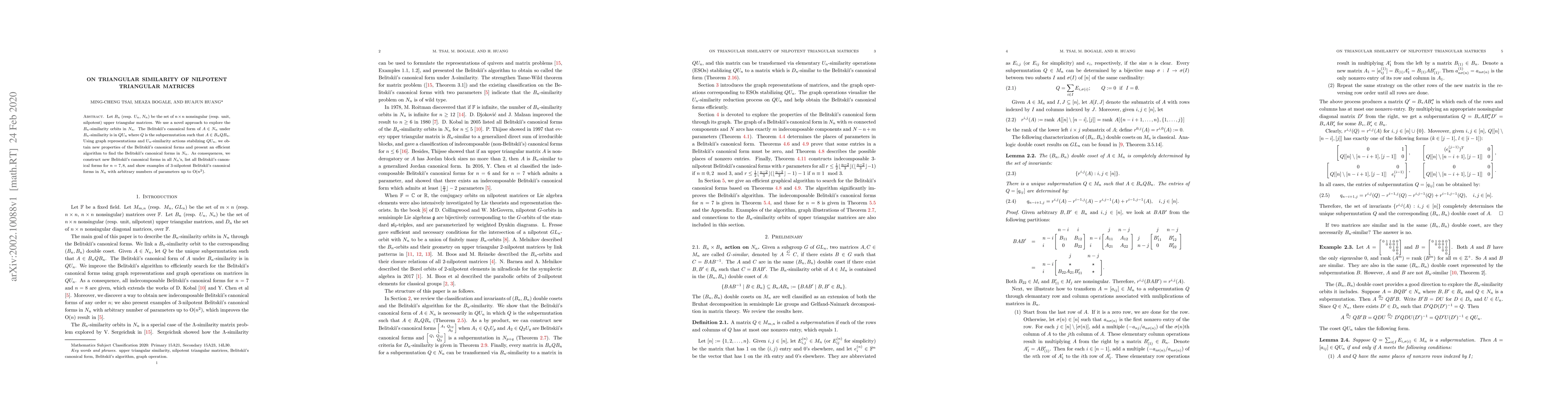 The paper introduces a novel method to determine $B_n$-similarity orbits in $N_n$ of nilpotent upper triangular matrices, deriving new properties of Belitski\u{\i}'s canonical forms and presenting an efficient algorithm for their computation. It also constructs new canonical forms for all $N_n$ and lists examples for $n=7, 8$, showcasing 3-nilpotent forms with up to $\operatorname{O}(n^2)$ parameters.