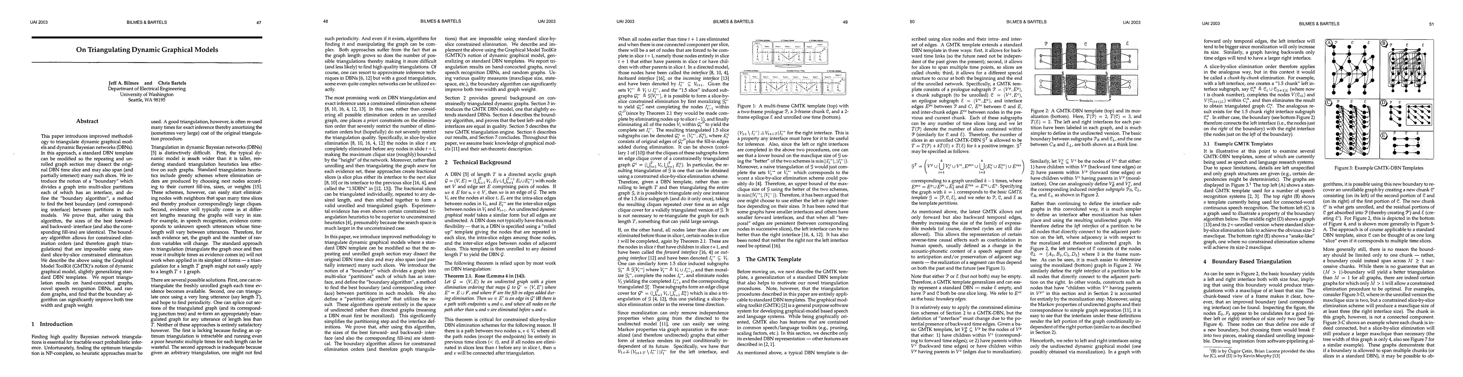 A new method to triangulate dynamic Bayesian networks and graphical models improves triangulation quality using a boundary algorithm that identifies optimal partition boundaries, leading to better constrained elimination schemes.