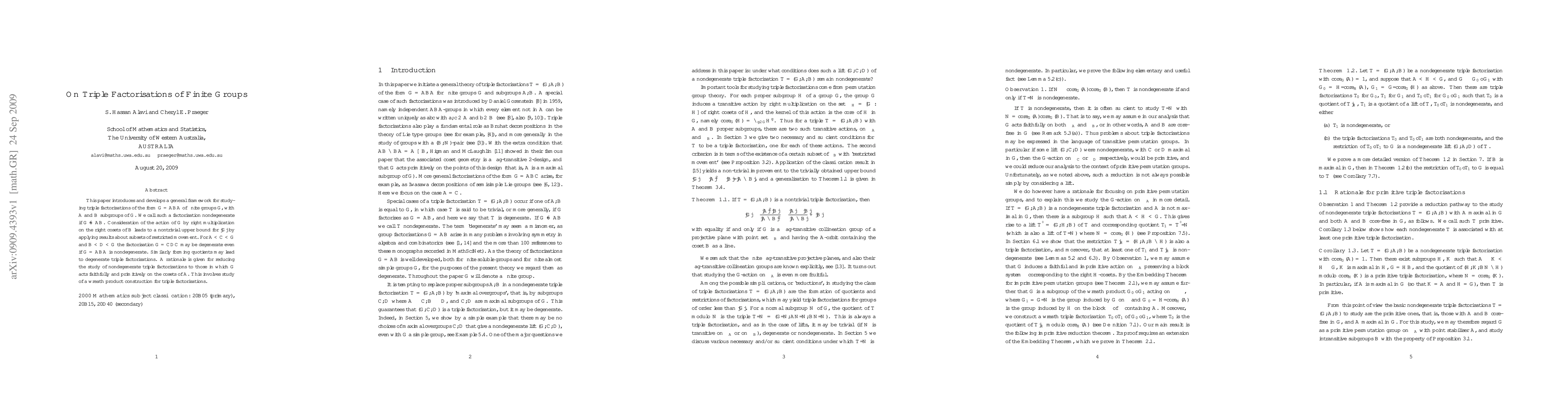 A paper introduces a framework to study triple factorisations of finite groups into subgroups A and B, aiming to bound group size and explore degenerate cases. It also proposes a wreath product construction for nondegenerate triples with faithfull action.