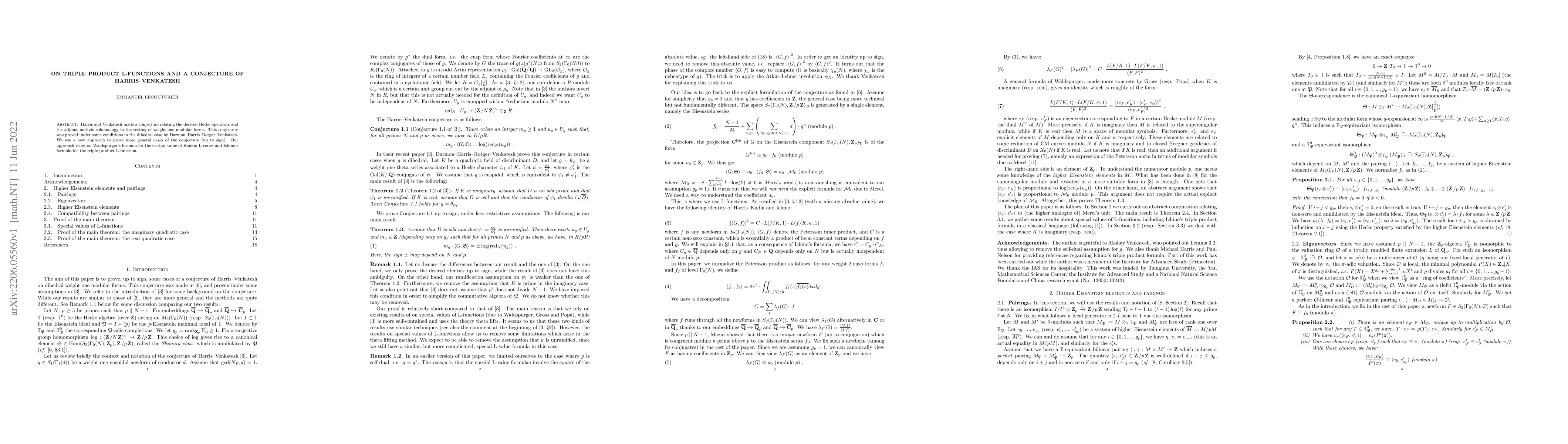 This paper proves more general cases of the Harris-Venkatesh conjecture relating derived Hecke operators and adjoint motivic cohomology for weight one modular forms, extending previous results in the dihedral case. The proof utilizes Waldspurger's formula and Ichino's formula for triple product L-functions.