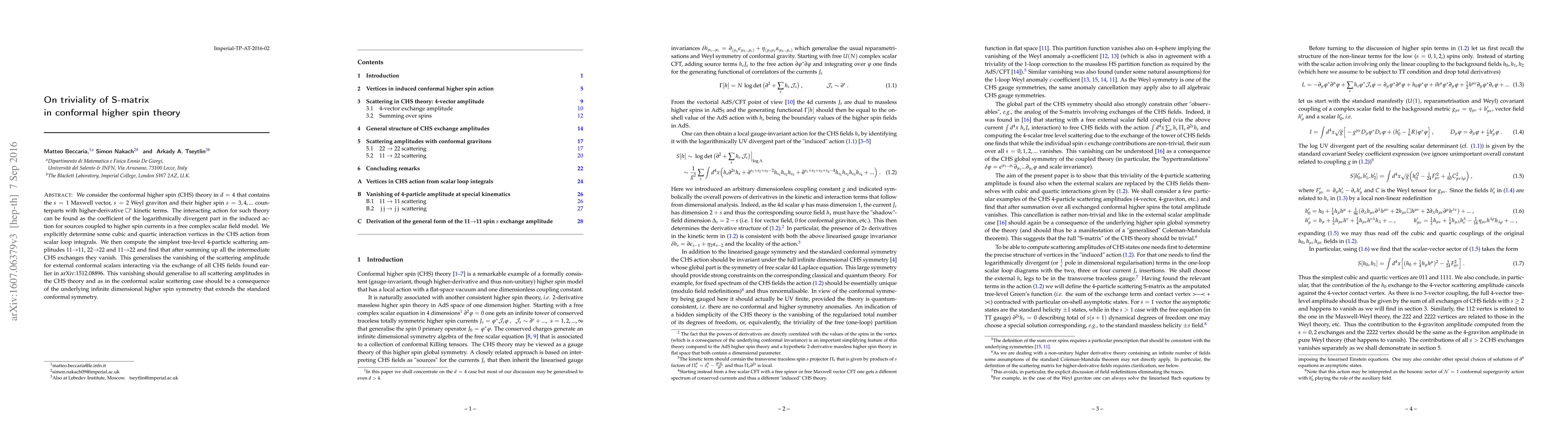 The paper explicitly determines cubic and quartic interaction vertices in the CHS action from scalar loop integrals, contributing to the understanding of conformal higher spin interactions.