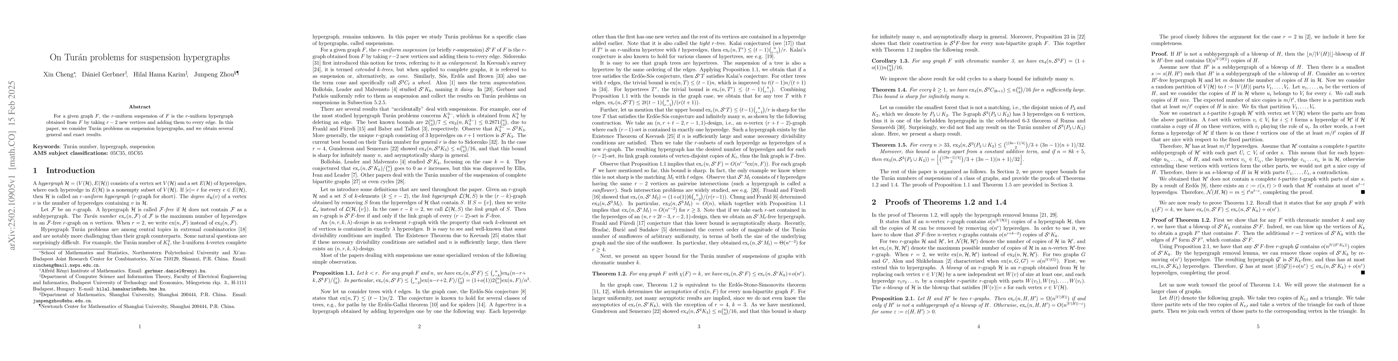 This paper investigates Turán problems for $r$-uniform suspension hypergraphs derived from a base graph $F$ by adding $r-2$ new vertices to each edge. The authors present general and exact results regarding these problems.