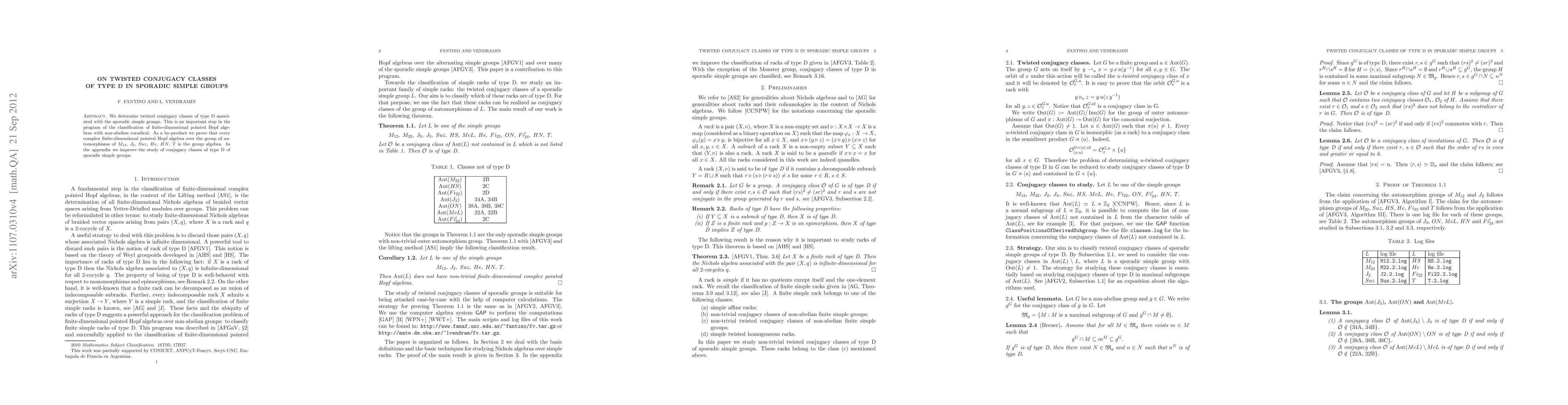 This paper classifies twisted conjugacy classes of type D in sporadic simple groups, advancing the classification of finite-dimensional pointed Hopf algebras with non-abelian coradical. As a result, it is proven that certain Hopf algebras over automorphism groups of specific sporadic simple groups are group algebras.