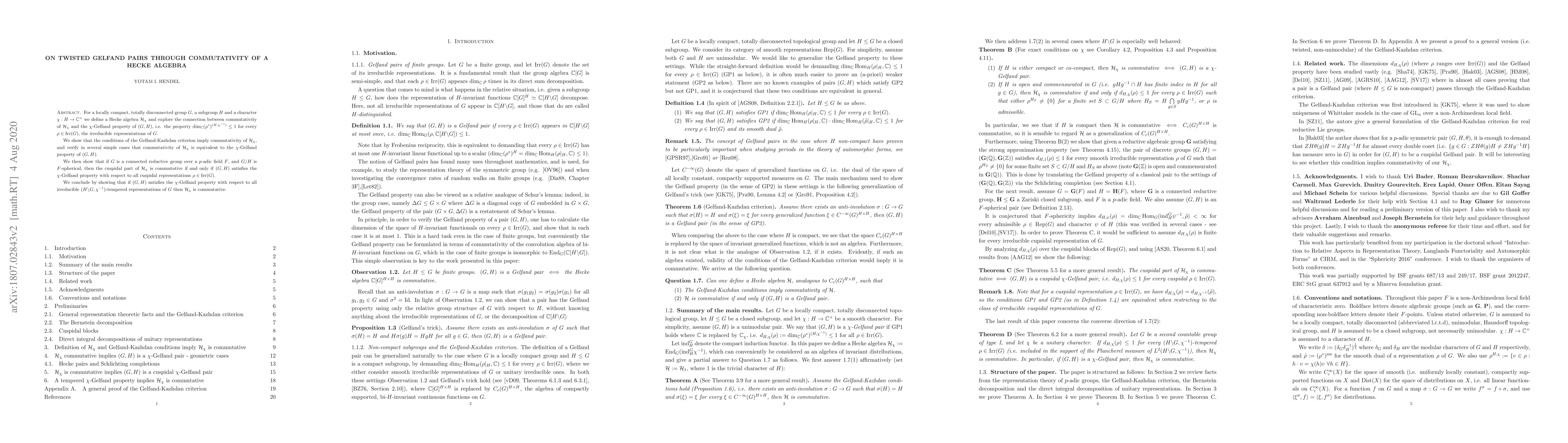 For a locally compact, totally disconnected group $G$, a subgroup $H$ and a character $\chi:H \to \mathbb{C}^{\times}$ we define a Hecke algebra $\mathcal{H}_\chi$ and explore the connection between commutativity of $\mathcal{H}_\chi$ and the $\chi$-Gelfand property of $(G,H)$, i.e. the property $\mathrm{dim}_\mathbb{C}(\rho^*)^{(H,\chi^{-1})} \leq 1$ for every $\rho \in \mathrm{Irr}(G)$, the irreducible representations of $G$. We show that the conditions of the Gelfand-Kazhdan criterion imply commutativity of $\mathcal{H}_\chi$, and verify in several simple cases that commutativity of $\mathcal{H}_\chi$ is equivalent to the $\chi$-Gelfand property of $(G,H)$. We then show that if $G$ is a connected reductive group over a $p$-adic field $F$, and $G/H$ is $F$-spherical, then the cuspidal part of $\mathcal{H}_\chi$ is commutative if and only if $(G,H)$ satisfies the $\chi$-Gelfand property with respect to all cuspidal representations ${\rho \in \mathrm{Irr}(G)}$. We conclude by showing that if $(G,H)$ satisfies the $\chi$-Gelfand property with respect to all irreducible $(H,\chi^{-1})$-tempered representations of $G$ then $\mathcal{H}_\chi$ is commutative.