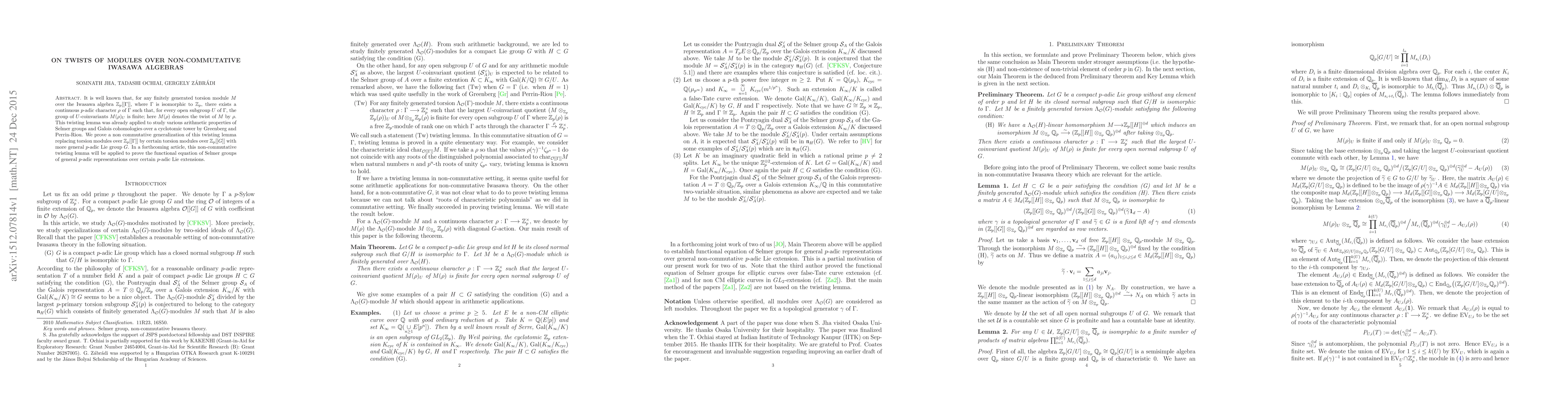 It is well known that, for any finitely generated torsion module M over the Iwasawa algebra Z_p [[{\Gamma} ]], where {\Gamma} is isomorphic to Z_p, there exists a continuous p-adic character {\rho} of {\Gamma} such that, for every open subgroup U of {\Gamma}, the group of U-coinvariants M({\rho})_U is finite; here M( {\rho}) denotes the twist of M by {\rho}. This twisting lemma was already applied to study various arithmetic properties of Selmer groups and Galois cohomologies over a cyclotomic tower by Greenberg and Perrin-Riou. We prove a non commutative generalization of this twisting lemma replacing torsion modules over Z_p [[ {\Gamma} ]] by certain torsion modules over Z_p [[G]] with more general p-adic Lie group G.