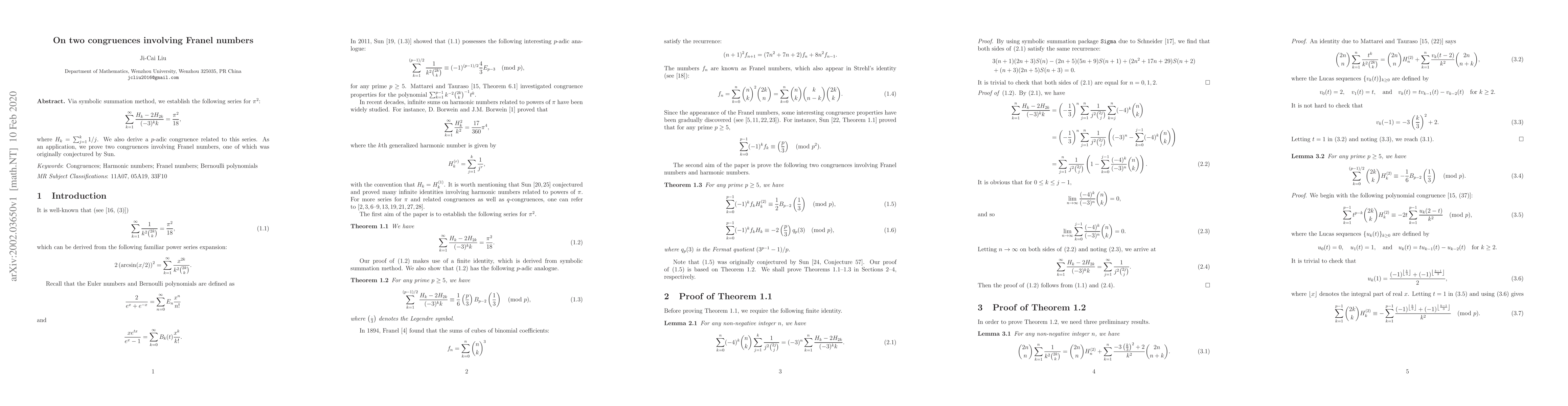 Researchers use a symbolic summation method to establish a new series for pi^2 and derive related p-adic congruences involving Franel numbers, including one originally conjectured by Sun.