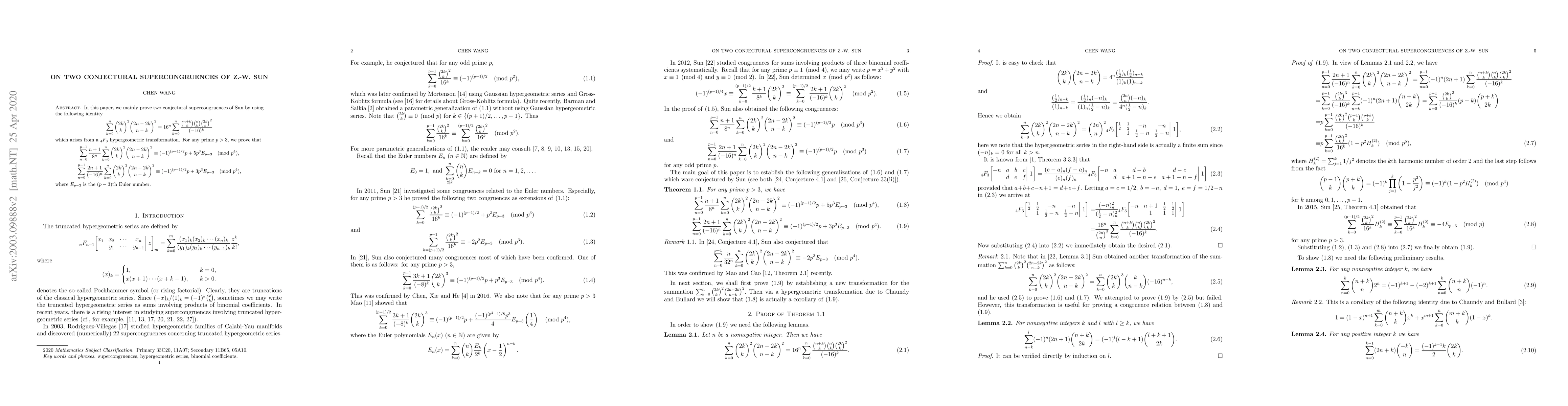 Researchers prove two conjectural supercongruences related to a hypergeometric identity, involving sums of binomial coefficients and Euler numbers, with implications for number theory.