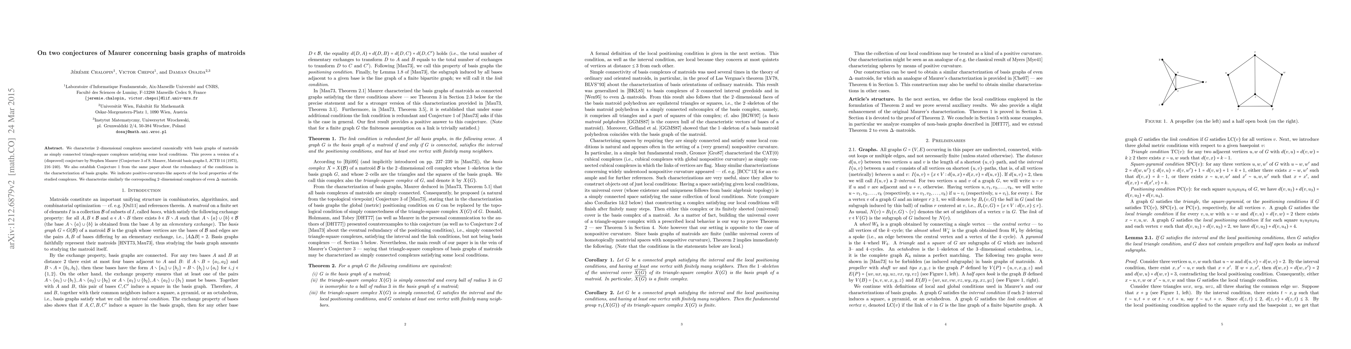 Researchers prove a version of Stephen Maurer's conjecture about 2-dimensional complex structures associated with matroids, establishing their local conditions and redundancy properties.