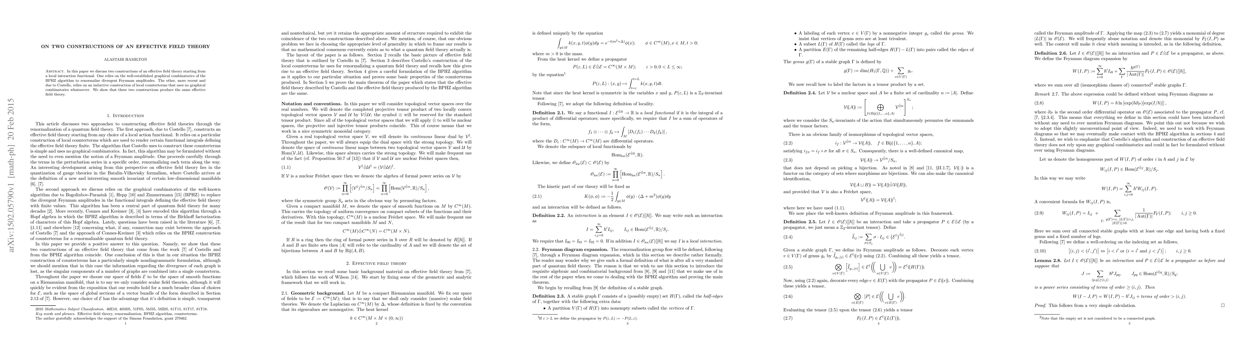 This paper compares two methods for constructing an effective field theory from a local interaction functional. Both, the traditional BPHZ algorithm and Costello's inductive method, are shown to yield identical results, despite their different approaches - one using graphical combinatorics and the other avoiding it.