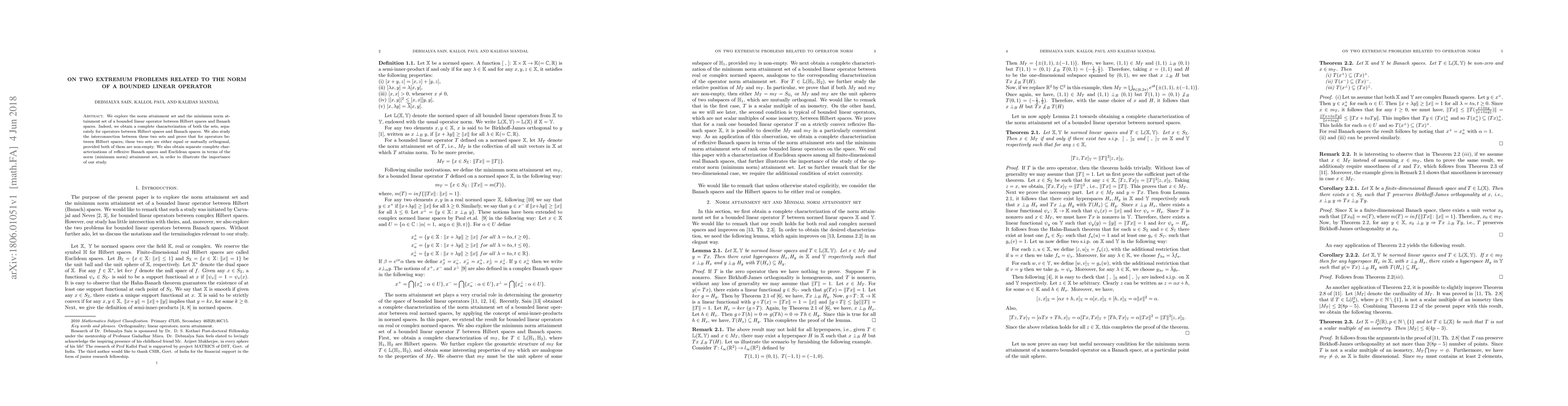 The paper explores the norm attainment set and the minimum norm attainment set of a bounded linear operator between Hilbert spaces and Banach spaces, providing complete characterizations for each separately.