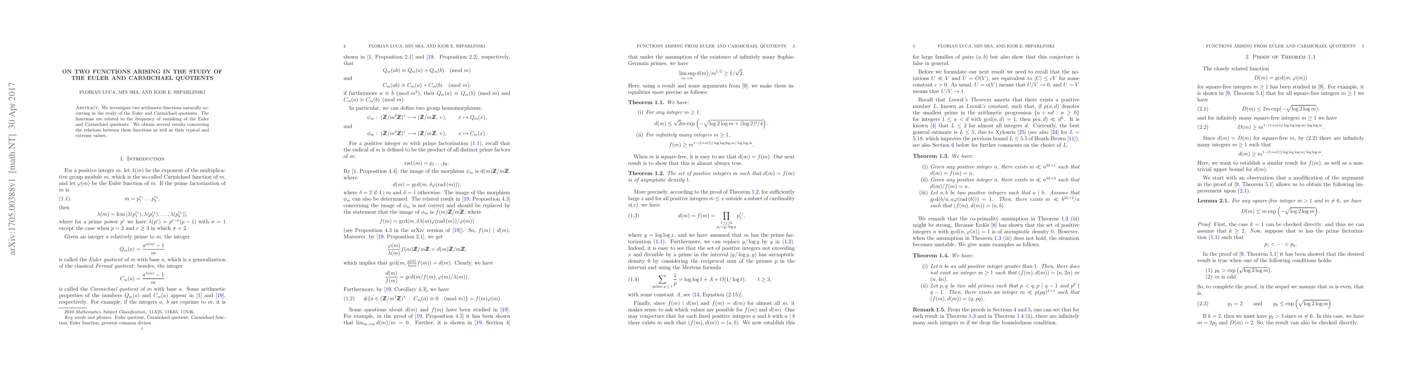 We investigate two arithmetic functions naturally occurring in the study of the Euler and Carmichael quotients. The functions are related to the frequency of vanishing of the Euler and Carmichael quotients. We obtain several results concerning the relations between these functions as well as their typical and extreme values.