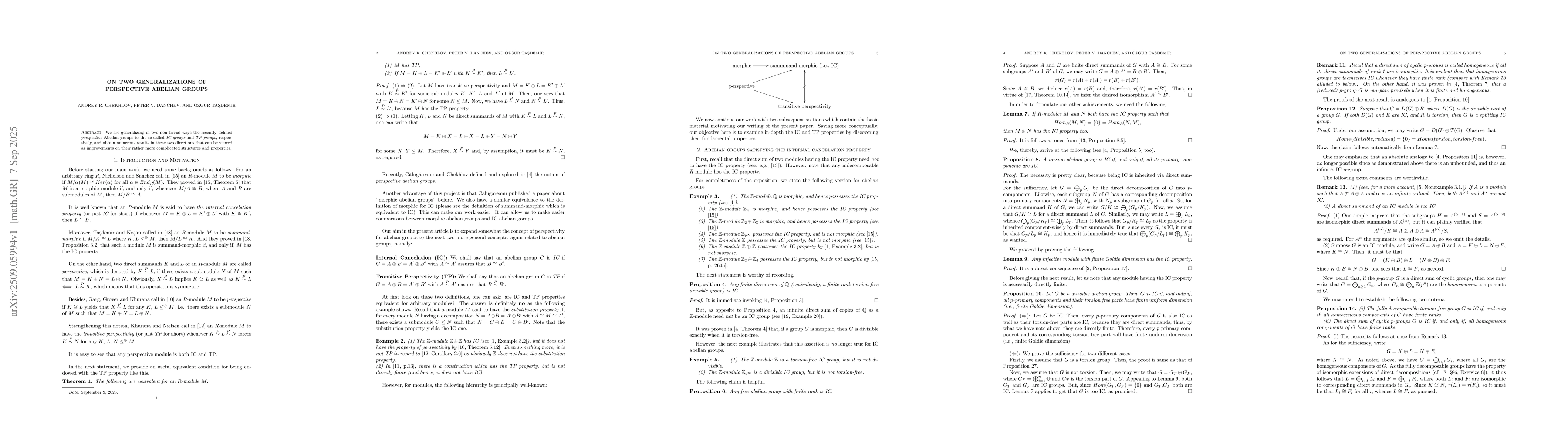 We are generalizing in two non-trivial ways the recently defined perspective Abelian groups to the so-called IC-groups and TP-groups, respectively, and obtain numerous results in these two directions that can be viewed as improvements on their rather more complicated structures and properties.