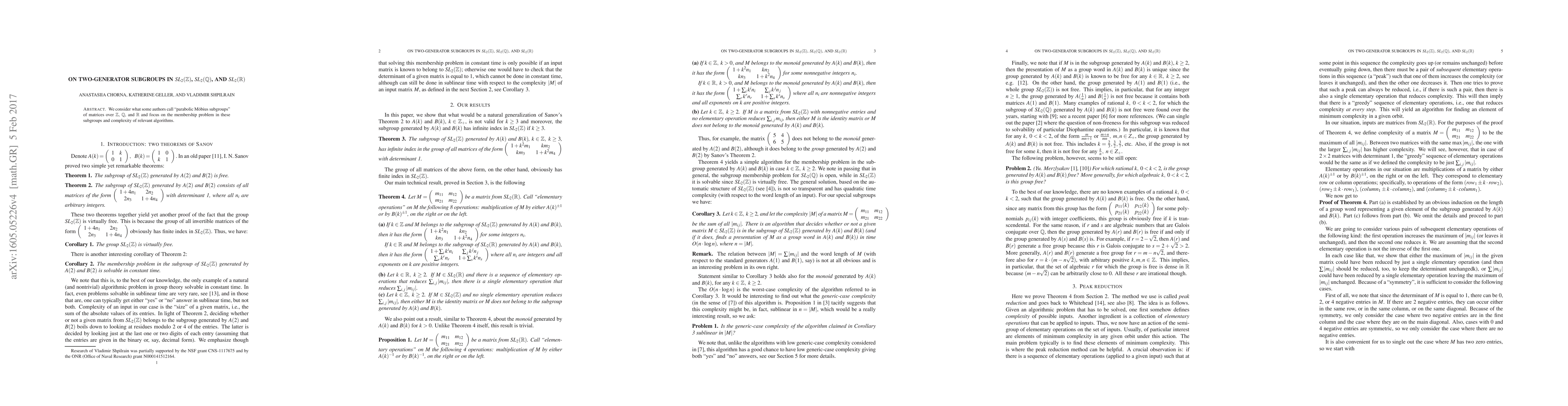 We consider what some authors call 'parabolic M\"obius subgroups' of matrices over Z, Q, and R and focus on the membership problem in these subgroups and complexity of relevant algorithms.