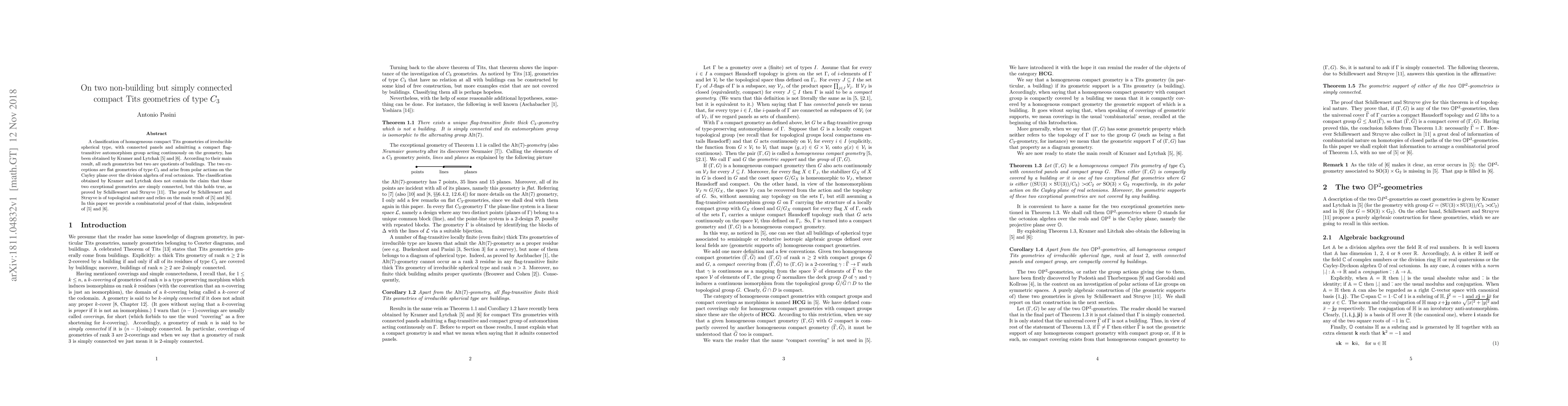 A classification of homogeneous compact Tits geometries of irreducible spherical type, with connected panels and admitting a compact flag-transitive automorphism group acting continuously on the geometry, has been obtained by Kramer and Lytchak (Homogeneous compact geometries, Transform. Groups 19 (2016), 43-58 and Erratum to: Homogeneous compact geometries, Transform. Groups, to appear). According to their main result, all such geometries but two are quotients of buildings. The two exceptions are flat geometries of type C3 and arise from polar actions on the Cayley plane over the division algebra of real octonions. The classification obtained by Kramer and Lytchak does not contain the claim that those two exceptional geometries are simply connected, but this holds true, as proved by Schillewaert and Struyve (On exceptional homogeneous compact geometries of type C3, Groups Geome. Dyn. 11 (2017), 1377-1399). The proof by Schillewaert and Struyve is of topological nature and relies on the main result of Kramer and Lytchak. In this paper we provide a combinatorial proof of that claim, independent of Kramer and Lytchak's result.