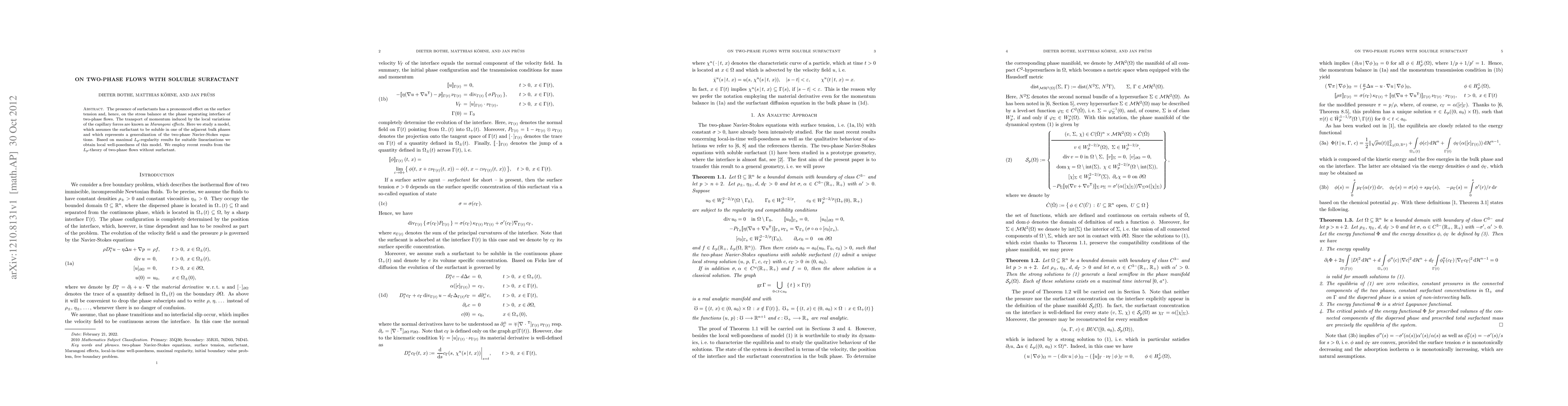 Researchers studied a model of two-phase flows with soluble surfactants, generalizing Navier-Stokes equations to account for capillary forces, and found local well-posedness based on maximal Lp-regularity results.