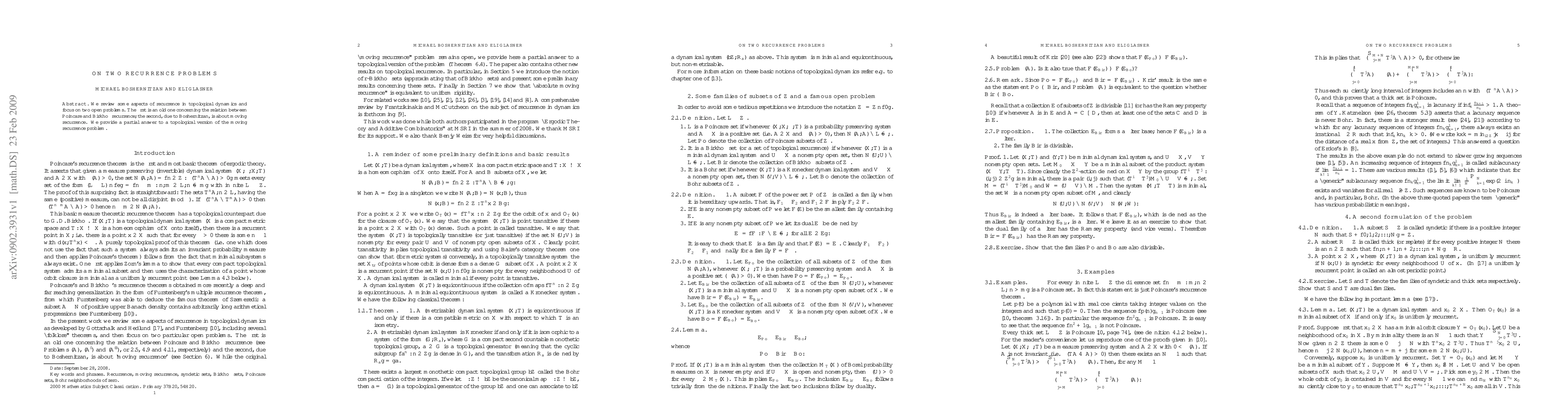 The paper employs tools from topological dynamics, focusing on recurrence problems, particularly addressing two open issues: the relation between Poincaré and Birkhoff recurrence, and Boshernitzan's moving recurrence problem. It provides a partial answer to a topological version of the moving recurrence problem.