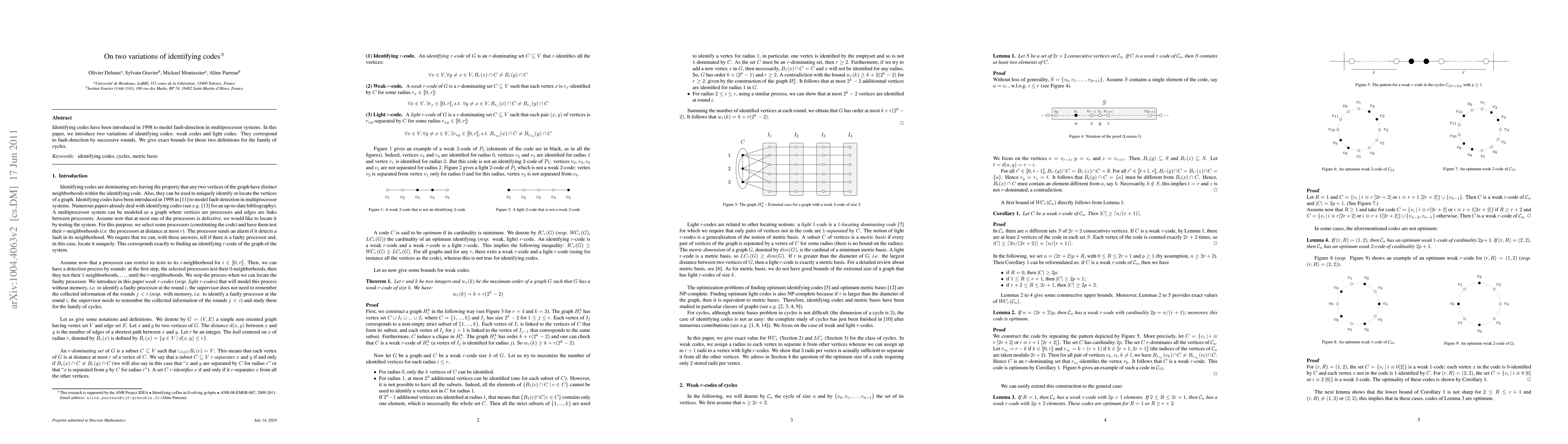 This paper introduces two new variations of identifying codes—weak codes and light codes—which are used for fault-detection in multiprocessor systems through successive rounds. It provides exact bounds for these definitions specifically for the family of cycles.