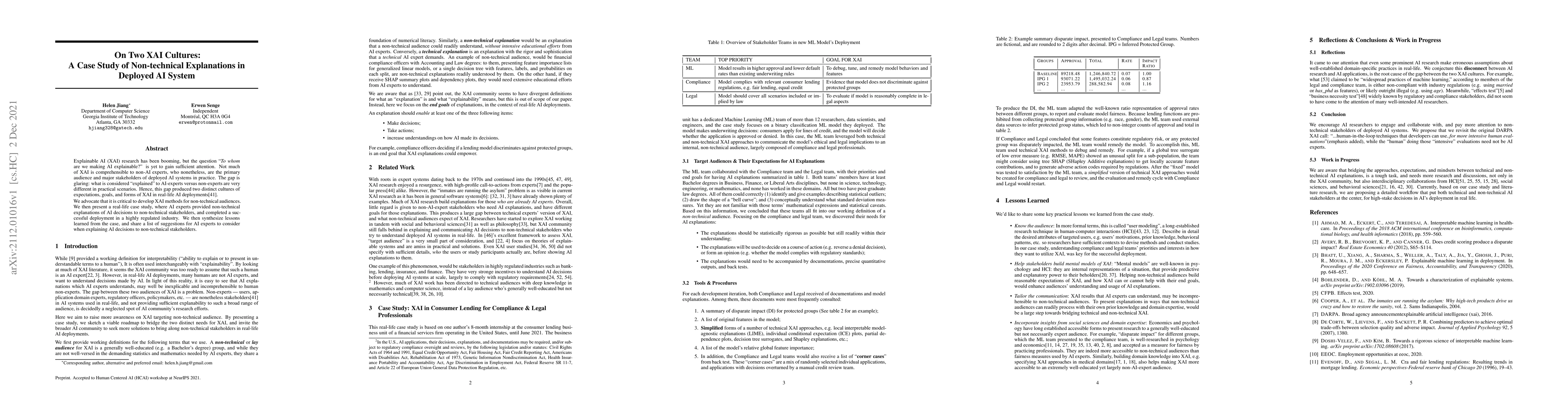 Explainable AI (XAI) research has been booming, but the question "$\textbf{To whom}$ are we making AI explainable?" is yet to gain sufficient attention. Not much of XAI is comprehensible to non-AI experts, who nonetheless, are the primary audience and major stakeholders of deployed AI systems in practice. The gap is glaring: what is considered "explained" to AI-experts versus non-experts are very different in practical scenarios. Hence, this gap produced two distinct cultures of expectations, goals, and forms of XAI in real-life AI deployments. We advocate that it is critical to develop XAI methods for non-technical audiences. We then present a real-life case study, where AI experts provided non-technical explanations of AI decisions to non-technical stakeholders, and completed a successful deployment in a highly regulated industry. We then synthesize lessons learned from the case, and share a list of suggestions for AI experts to consider when explaining AI decisions to non-technical stakeholders.