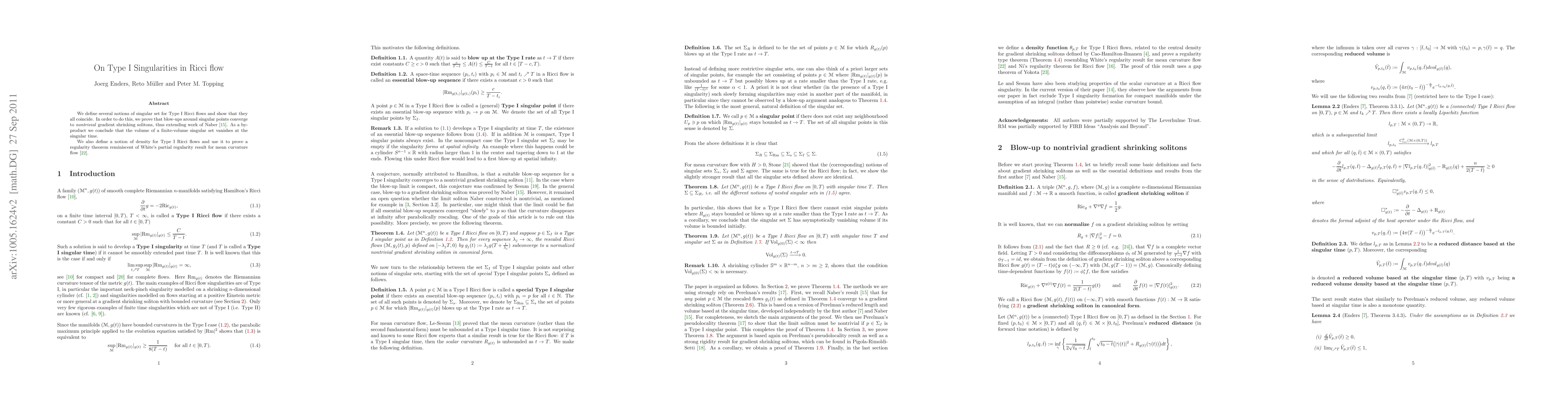 Researchers investigate Type I Ricci flows and find that different notions of singular set coincide, leading to a regularity theorem similar to White's result for mean curvature flow, with implications for understanding the behavior of these flows.