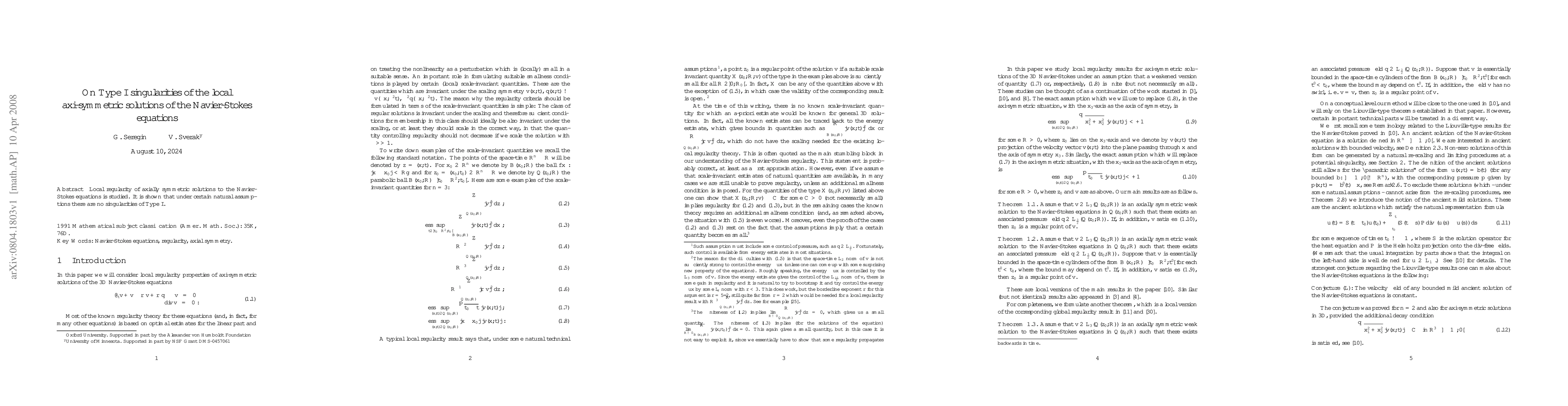 Local regularity of axially symmetric solutions to the Navier-Stokes equations is studied. It is shown that under certain natural assumptions there are no singularities of Type I.