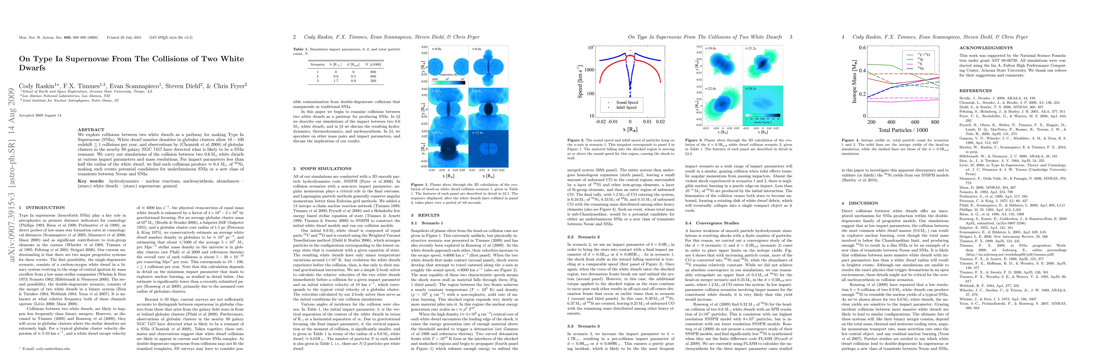 This paper investigates the possibility of Type Ia Supernovae (SNIa) resulting from collisions between two white dwarfs, finding that such collisions can produce around 0.4 solar masses of Ni56, potentially leading to underluminous SNIa or a new class of transients. Simulations show that these events are plausible given the white dwarf number densities in globular clusters.