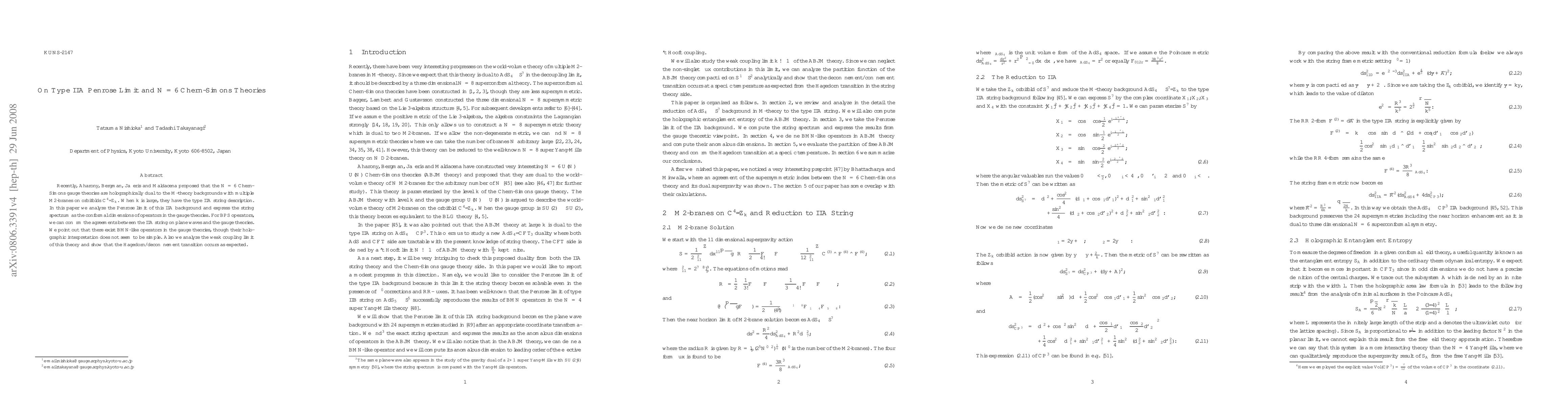 This paper investigates the Penrose limit of type IIA string backgrounds, revealing a holographic duality between N=6 Chern-Simons theories and M-theory on orbifolds. It confirms agreements between the IIA string spectrum and the conformal dimensions of operators in the gauge theory, while also noting the existence of BMN-like operators without clear holographic interpretations.