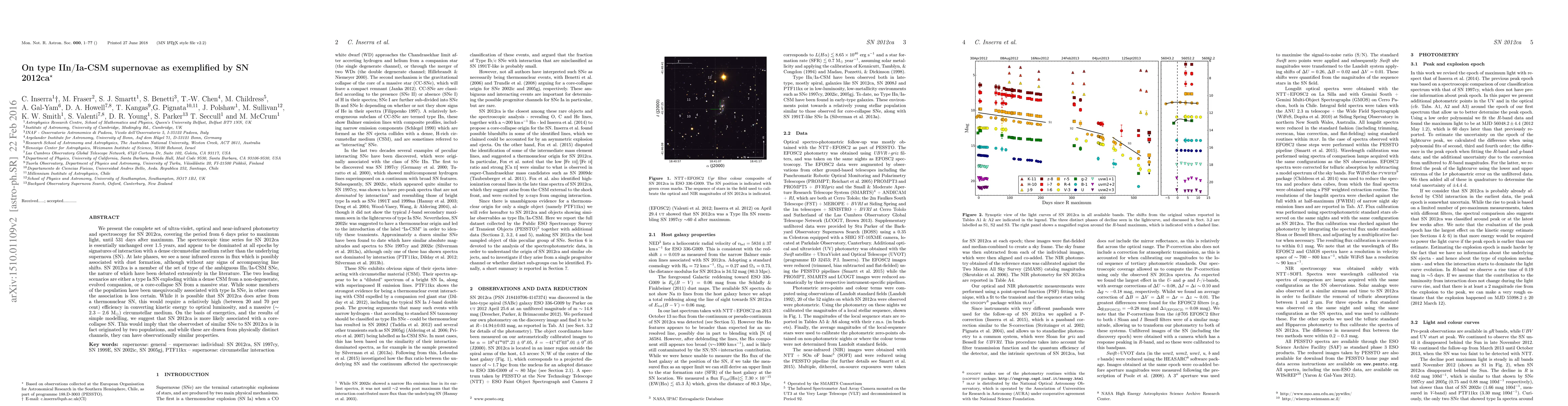 This paper analyzes SN 2012ca, a type IIn/Ia-CSM supernova, showing its interaction with a dense circumstellar medium and suggesting it likely arises from a core-collapse SN rather than a type Ia SN, indicating two distinct populations for similar supernovae.