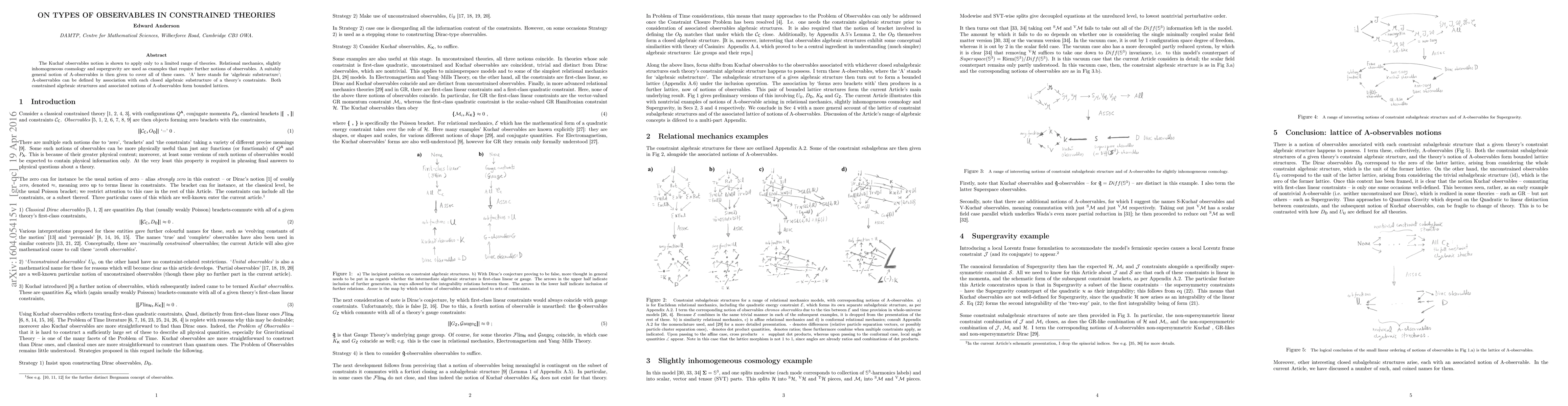 The Kuchar observables notion is shown to apply only to a limited range of theories. Relational mechanics, slightly inhomogeneous cosmology and supergravity are used as examples that require further notions of observables. A suitably general notion of A-observables is then given to cover all of these cases. `A' here stands for `algebraic substructure'; A-observables can be defined by association with each closed algebraic substructure of a theory's constraints. Both constrained algebraic structures and associated notions of A-observables form bounded lattices.