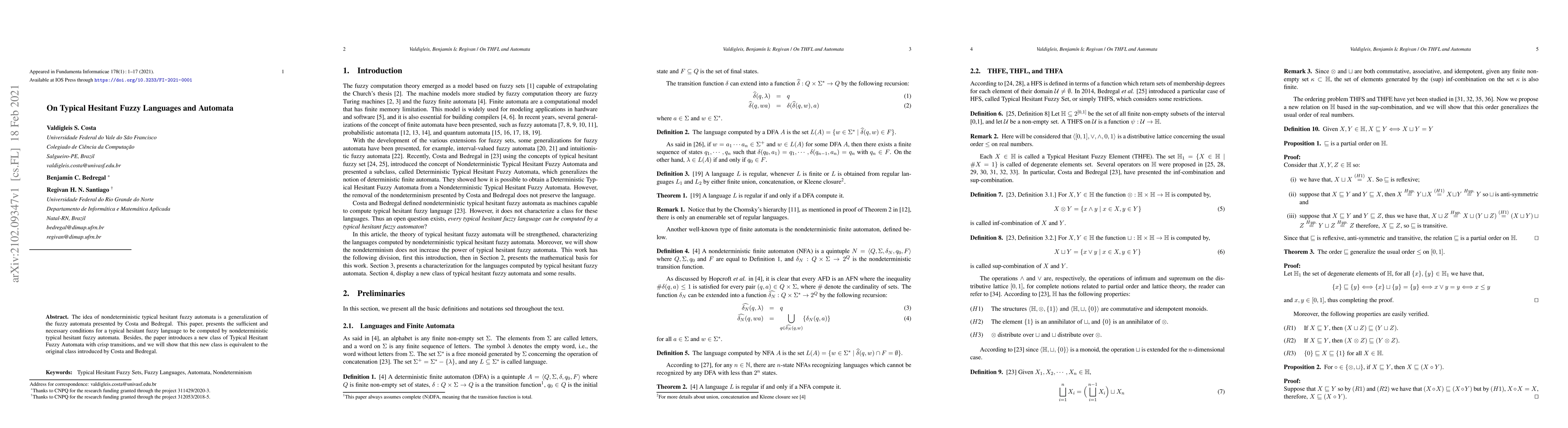 The research distinguishes itself by demonstrating that nondeterminism is not necessary for computing typical hesitant fuzzy languages and by introducing a new class of CDTHFAs equivalent to NTHFAs.